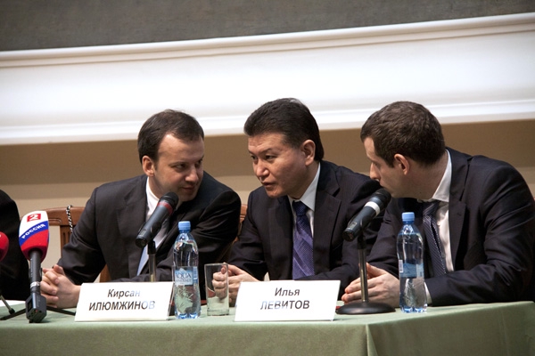 Действующий глава Федерации шахмат России в 2010 году, вице-премьер правительства Аркадий Дворкович полностью поддерживал кандидатуру Илюмжинова. Но однажды ему позвонил исполнительный директор федерации, давний помощник Карпова Александр Бах и пригласил приехать на заседание в Центральный дом шахматиста на Гоголевском бульваре. Там собирались представители регионов и два прославленных чемпиона, которые планировали рассказать про свою программу и призвать ФШР к тому, что пора менять Илюмжинова и выдвигать от России новую кандидатуру.
