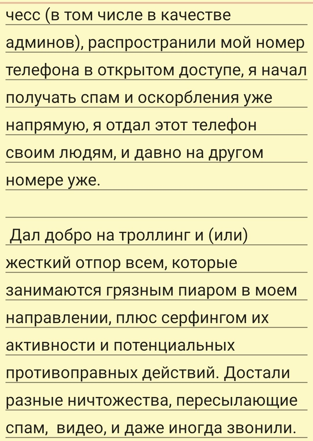 3 дня назад зарегался на чесскоме. Каждый день мне попадалось по читерку, благополучно были репортнуты и забанены с возвратом ПТС. И тут я вспоминаю годы игры на личессе, где банят кого-то дай бог раз в полгода. Хоть мне больше нравится личесс, но в эту читопомойку больше ни ногой