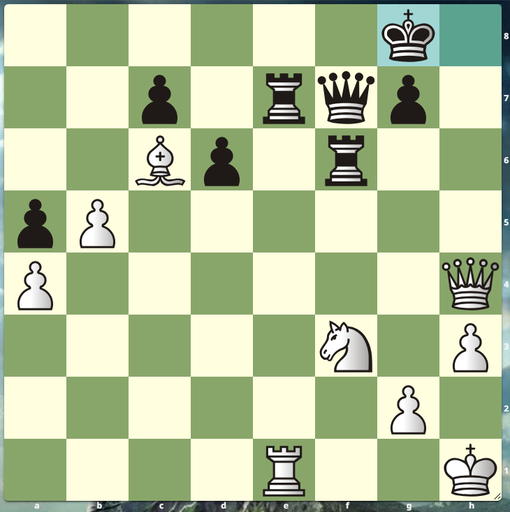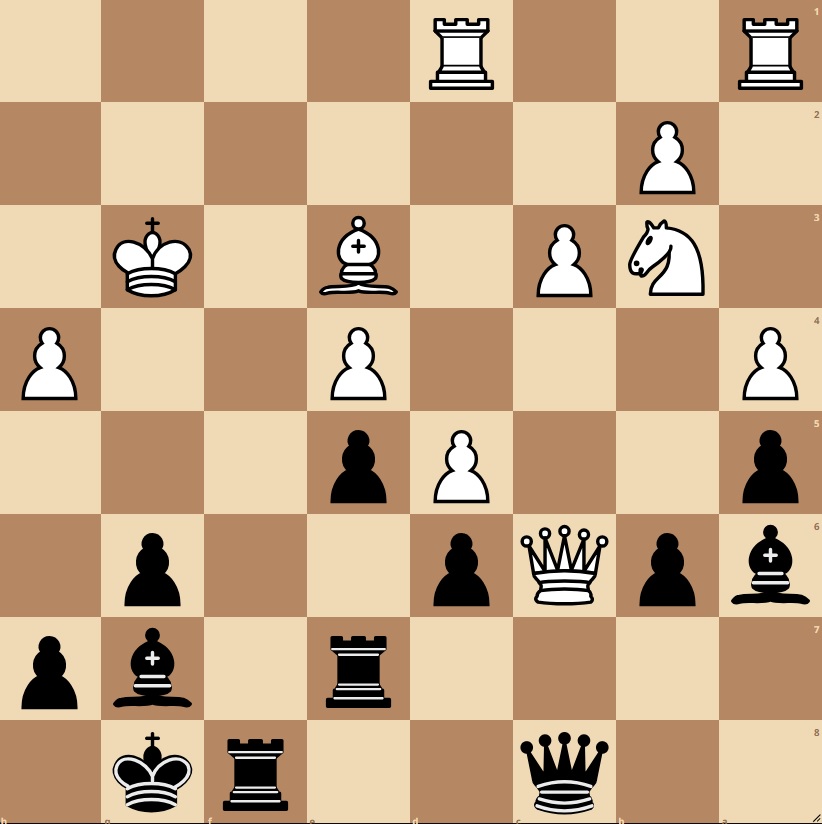 >>3242643 Нет все я не знаю. Я всю бошку себе сломал об эту задачу за час+ все легальные ходы пересмотрел даже королем. Чувство того что за черных слишком много вариантов выкрутиться несмотря на то что доска почти пустая это пиздецкая нагрузка на мозг. Слишком дохера тут разветвлений хотя кажется че такого сложного когда фигур мало