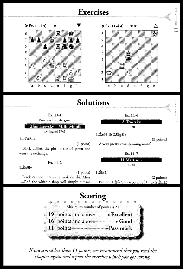 Пик 2 Exercises(перевод "Упражнения") вот так выглядят в этой книге реальные одноходовые задачки для нубиков, в них ученики самостоятельно выставляют балы и оценивают уровень. Отдельно ПО ЗАРАНЕЕ обозначенному разделу "СВЯЗКА" мы видим задачки-решения-результат.