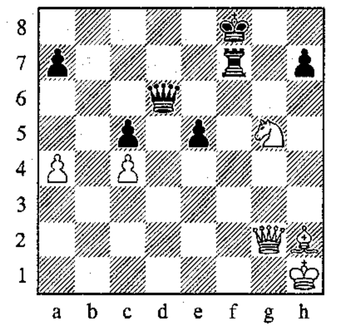 >>3228724 Ладно, выигрывает Bb6+! Слона приходится забирать из-за ..Kgc8 2.Rе8x, а на ..ab следует тихий ход Qe3 с двумя матовыми угрозами - ферзем с e8 и по диагонали: Qb6+, Re8x. По пути черные могут скинуть ферзя, но особо оно не помогает. Мне показалось симпатишной, поскольку и сам решить сразу не смог, ну и тихий ход после жертвы чего-то в голову не приходит искать.