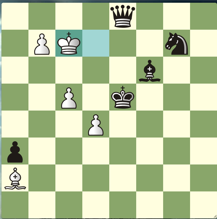 >>3228566 Завтра попробую на доске разыграть, глянуть варианты, сегодня уже заебался. Короче, у чёрных видимо один вариант - жрать слона как в решении задачи, а затем тащить проходную.