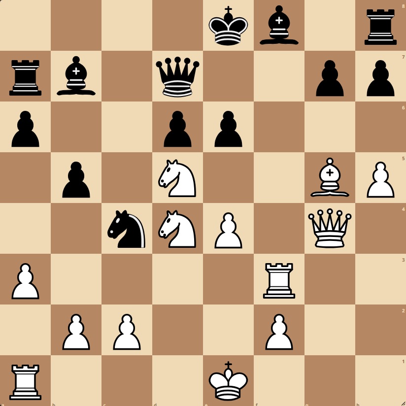 >>3241890 Ф4 тычок пешки, размен ладьями на е4. Если черные забирают нашу ладью е4 слоном, то выскакиваем своей второй ладьей на е1 с подвязывая слона. Иначе проталкиваем пешку ф5 на слона, ферзь открывается стреляет на поле б8 с идеями что конь прыгает на е7 с тройной вилкой на короля, ферзя и слона на ф5. Примерно такое, конкретику лень думать. 1300 рейт за вас всех не должен тут в соло пыхтеть напрягаться