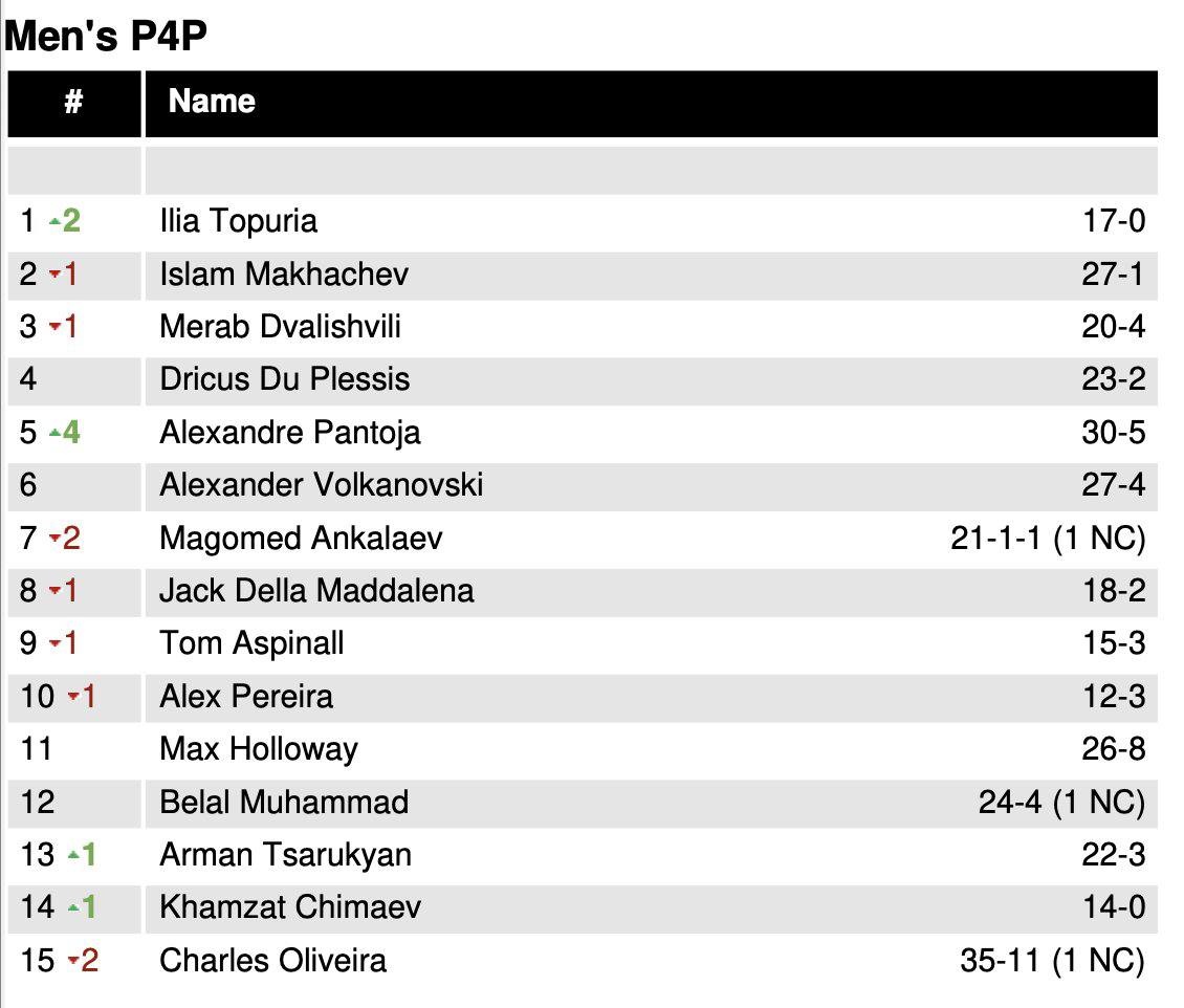 Мне интересно, после победы Топурии UFC подвинут Ислама и поставят грузина #1 Паунд фо паунд, тем самым чуть-чуть уязвив и попытаются раскрутить супер бой, если Ислам пройдет Джека (в чем я уверен) и мы увидим поединок: Непобежденный чемпион в двух весовых против другого чемпиона в двух весовых, за статус единственного чемпиона в трёх весовых (для Топурии разумеется).
