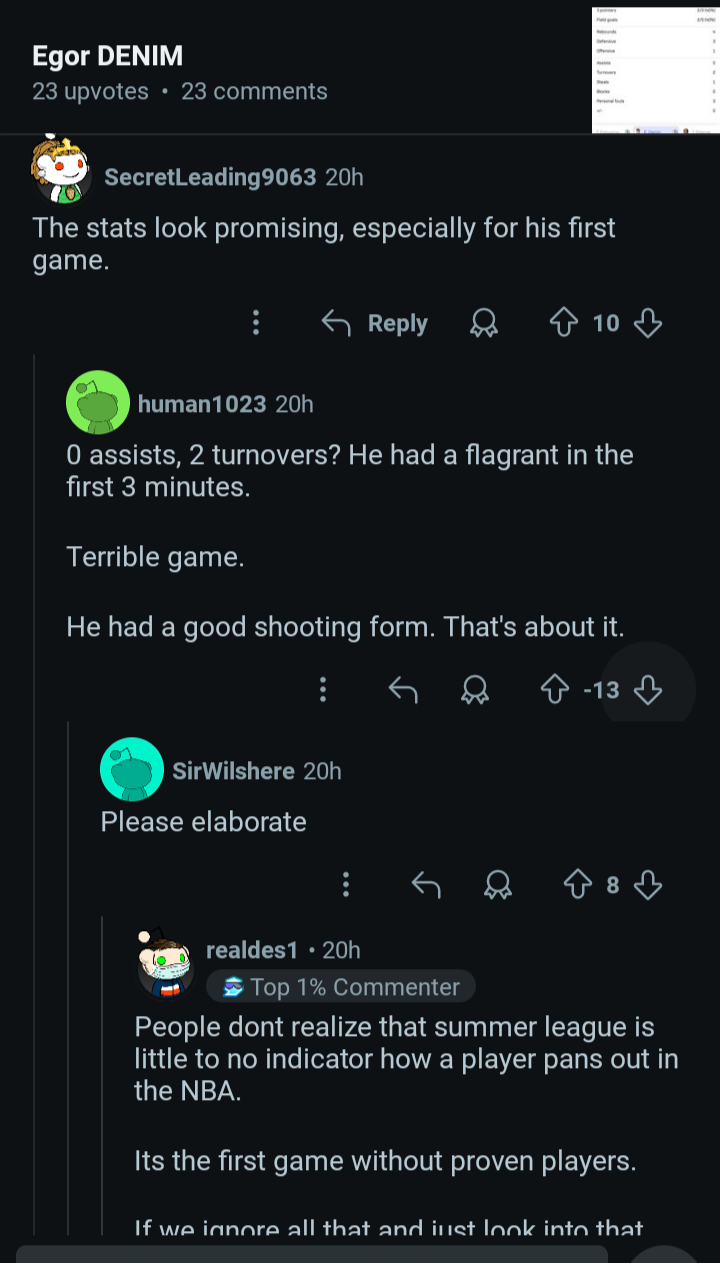 Главный стил этого драфта набрал аж 3 очка за 22 минуты, при 1 из 11 с игры и 1 из 2 с линии, в дебютном матче в летней лиге. Видимо неспроста он так на драфте упал