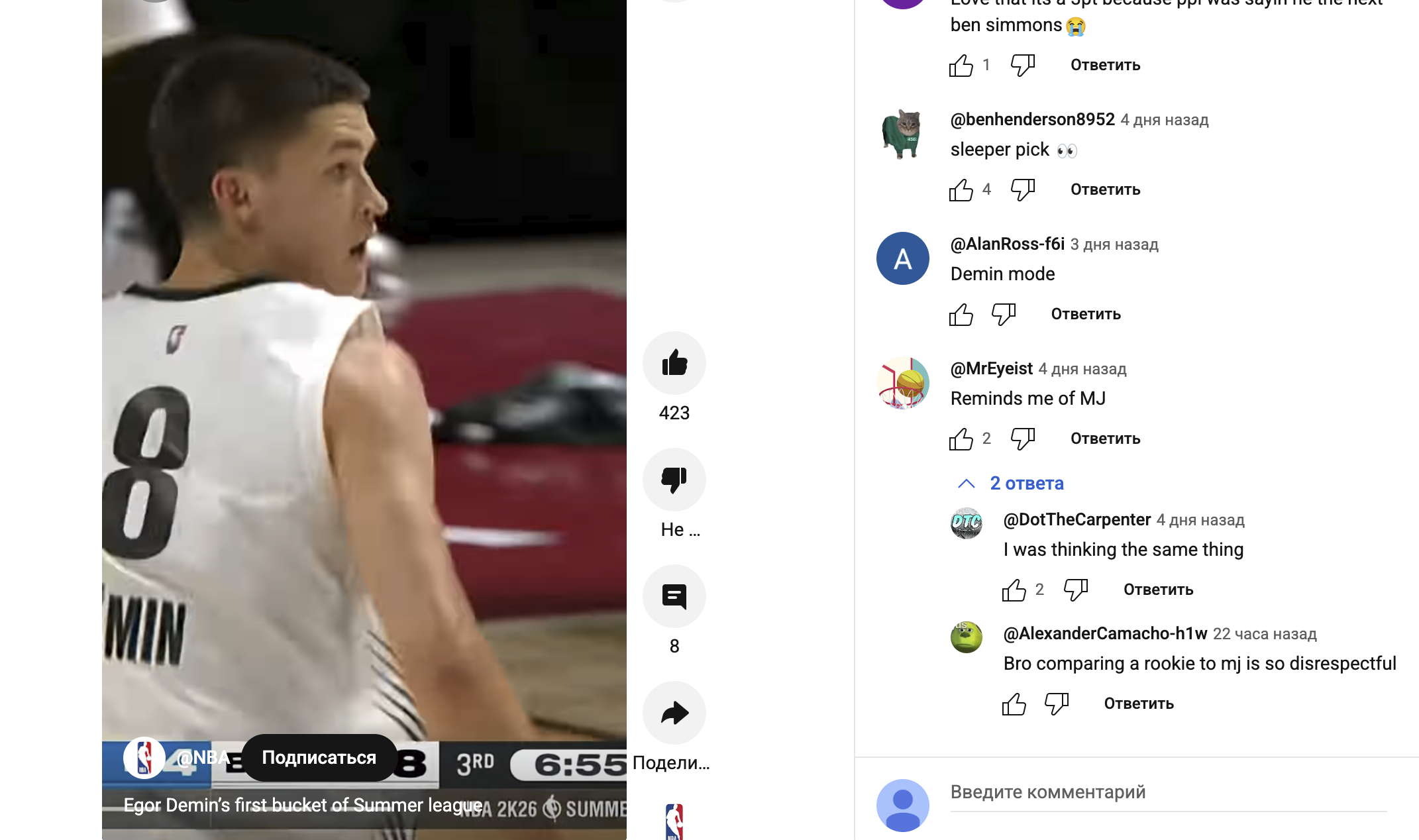 От безделья среди ночи фоном включил интервью Голдина на Взял мяч. Чёрт, парень профессор баскетбола. Ясно, что ему уже 25, но много интересной инфы. 5 лет пылил за колледжи, русский чуть-чуть забывает.