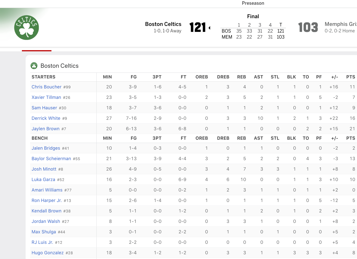 Хах, Ботсон проигрывает Филе 6 оч к перерыву, притом что Эмбиид проваливает матч, без Татума, Деда и литовца это команда уровня плей-ин в лучшем случае.