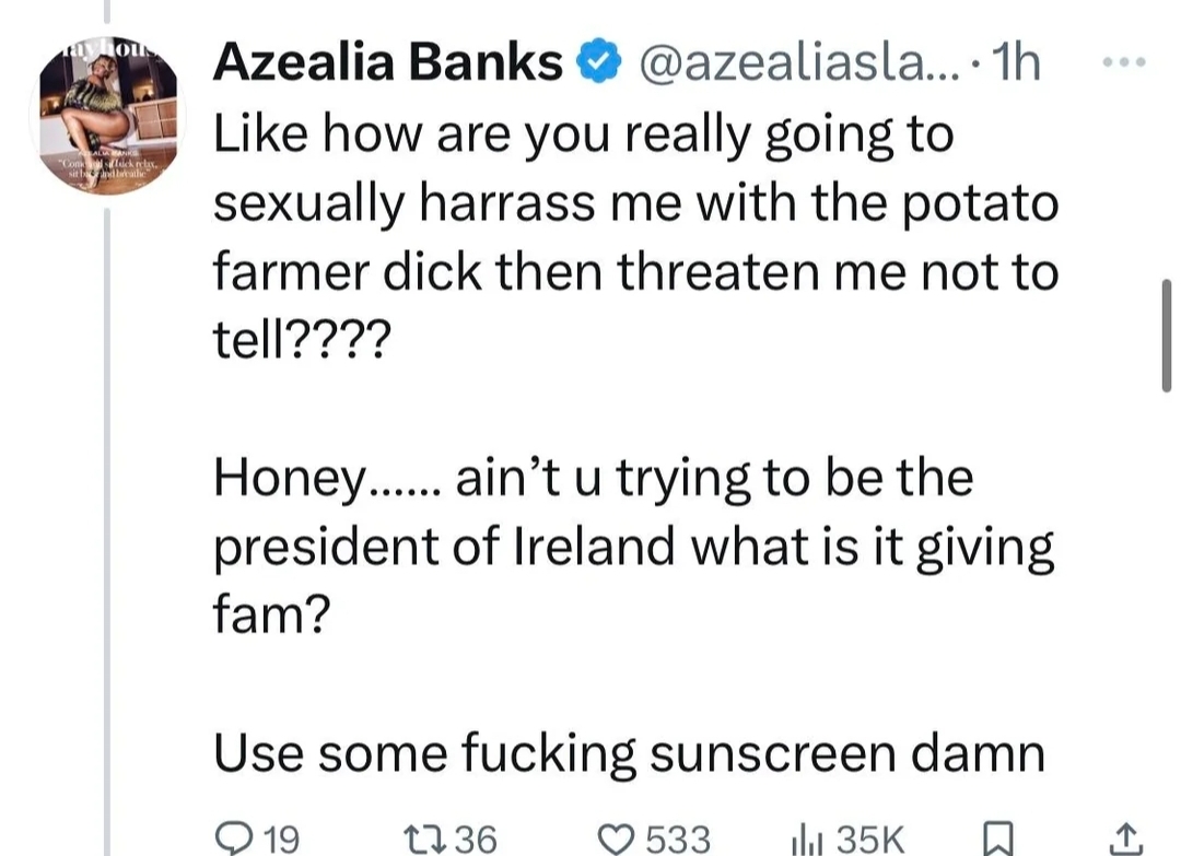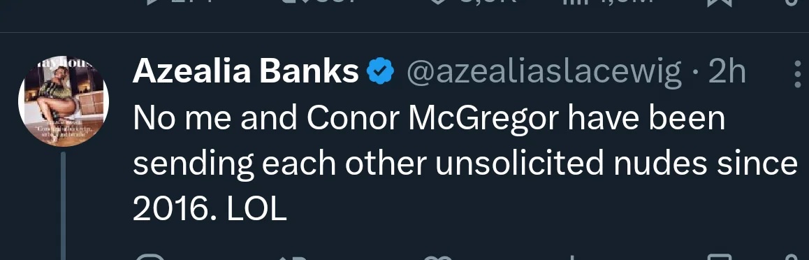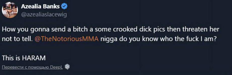 >>3227952 Кста, он это негритянке реперше отправил. Чёрные женщин стабильно сливают наших пацанов. Сначала Тайрона, теперь Конора, надо бы спросить с них за мужское.........