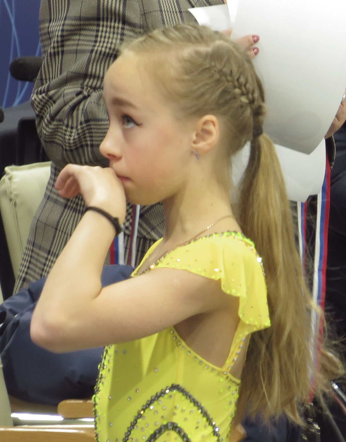 Camila VOLKOVA с Волковым и Волковой (т.е. с папой и мамой) >Камила давай ??? 3t fall +combo полукубарем 2a такая транса что ничего не поймешь, ютуб считай можно не смотреть 3r ??? wobbling? колени не гнутся, типичная русская фигуристка.