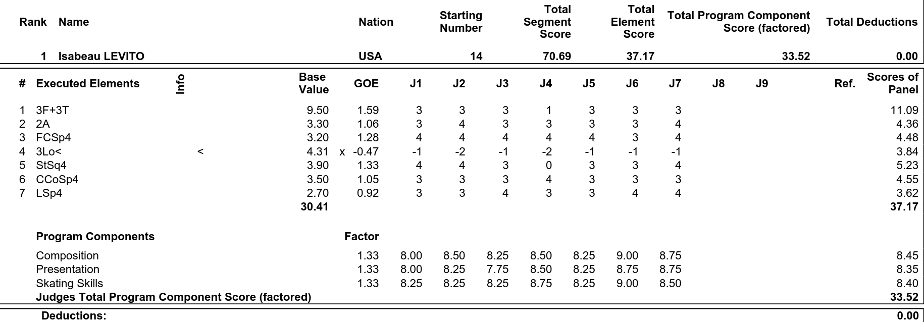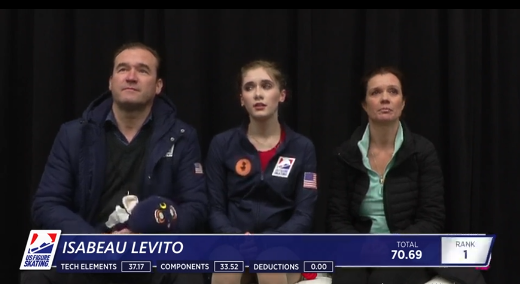 Isabeau LEVITO в чёрном 3z???3tq? 2a 3r 3s 3f2a 3r2t2r 3z клюнула, чуть рукой не коснулась chsq1 инна бауэр, прыжок в шпагат Сегодня разбудила дремлющую в себе Бабасян
