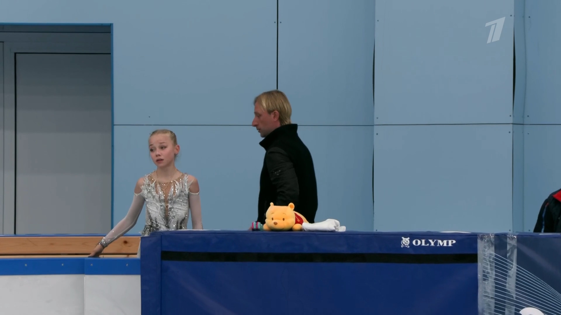 София Сарновская, с Плющенко, Значковым и Алексеевым прошлогоднее платье Лебединая песня - и программа 3r 2a разогналась на 3z ho 1t Панова разговаривает с бабкой в кепке.