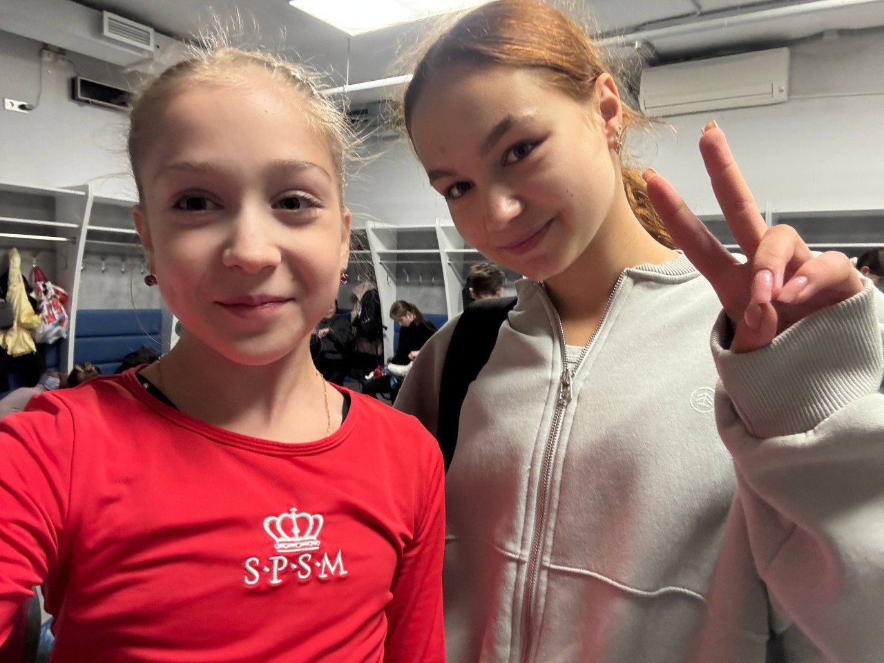 Стефания Максимовна МАКИНА, 04.03.2015 Наши Надежды: Мария Чудина (c сентября 2025) 3s<? 3r< 3fe<< fall ccosp2 в обе стороны 3fe3t< wobbling 3z2a2t 3z<2a wobbling chsq1 прыжок в шпагат, фонарик, бежит на вращение