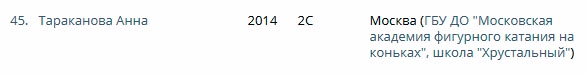 Александра Владимировна ГНИЛОМЕДОВА, 10 лет, 27.01.2015 Хрустальный, Антон Шибнев (c января 2025), Коробейникова (c июня 2025) 3fe2t 3z<< на 2 ноги 3r2t1a chsq1 3z<< fall +rep 3fe<2t 2a ho