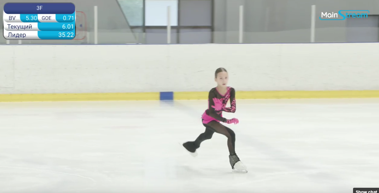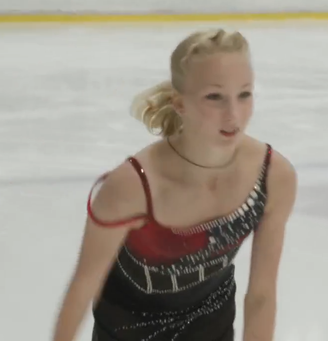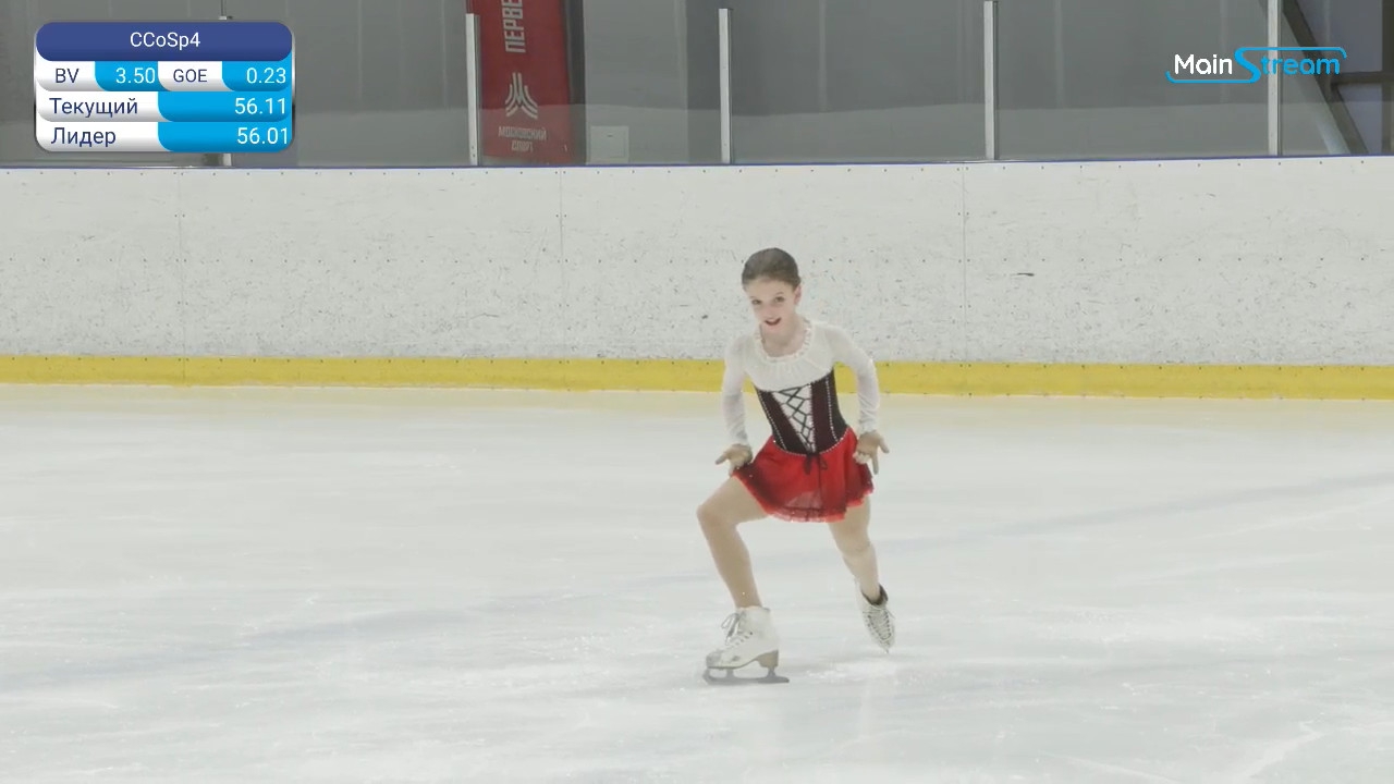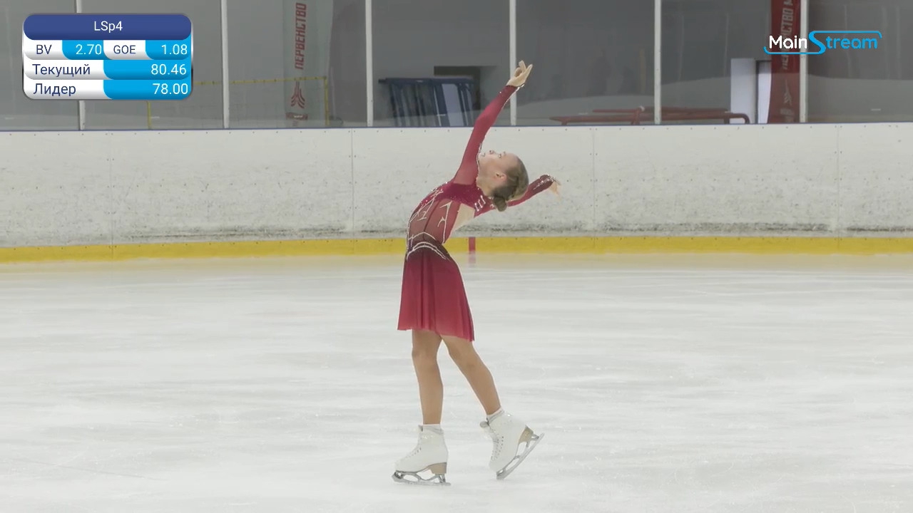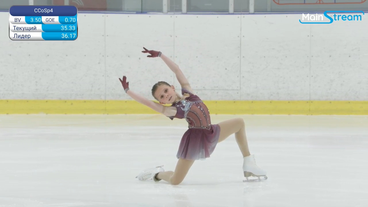 Милана Петровна ЛЕБЕДЕВА, 15 лет (29 июня 2010) ООО Академия фигурного катания Ангелы Плющенко в бордовом, французская хтонь (aka BULLSHIT LIMONADE MUSIC) 3r прыжок в шпагат 2a с кораблика 3zq???3t< stsq3 чуть не успела, школа ЕВ-2, 35.69, потом порезали до 33.32