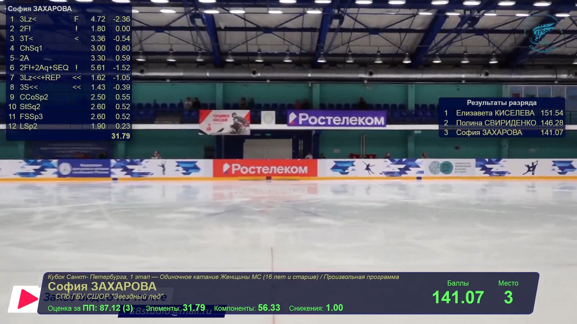 София Валерьевна САРНОВСКАЯ ООО Академия фигурного катанПохлия Ангелы Плющенко Arinka music 3a< (<<?) fall 3r 3f2t 3s 3z3t wobbling в хв 3z кубарем назад fall, вылетела из круга 3f!2a2a Похоже Парсешка перекатала Спрутика. chsq1 гидроблейд в слайд