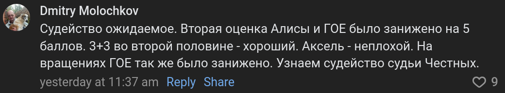 >— Первенство Москвы по прыжкам прошло неплохо, но можно еще доработать компоненты. В целом рада. При подготовке к сезону акцентировали внимание больше всего, наверное, на четверном сальхове. Долго напрыгивали и подходили к этому прыжку. В программе готовили месяца два. Еще работаю над четверным тулупом.