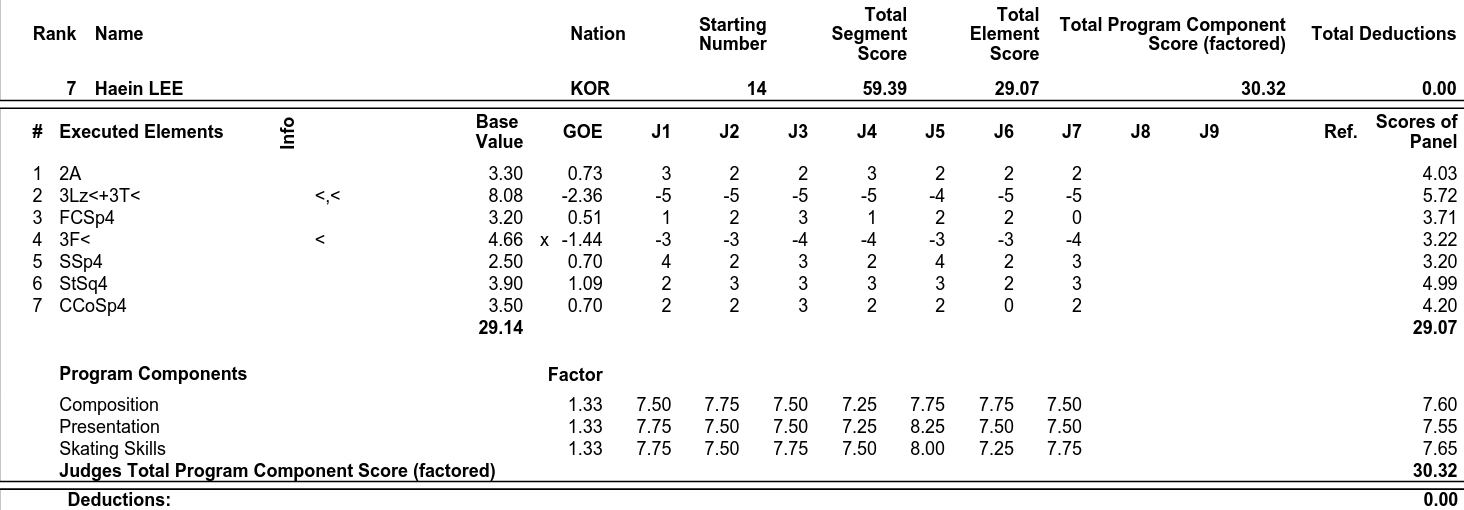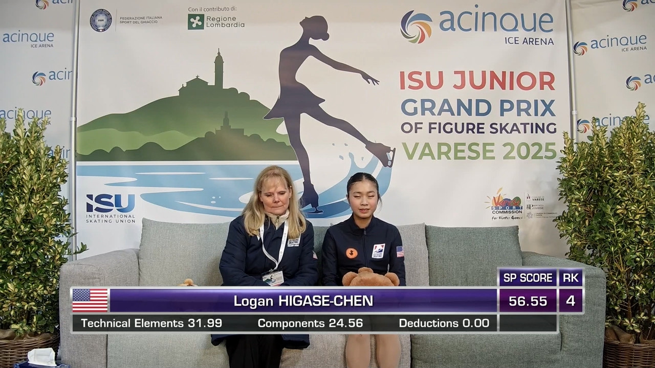Logan HIGASE-CHEN, USA, 17 лет >Hong Kong 3f3t 2a прыжок в шпагат 3r meh - "slighty change of edge" stsq4 вроде бы всё делает, но не доделывает >loved that! dynamic finish!