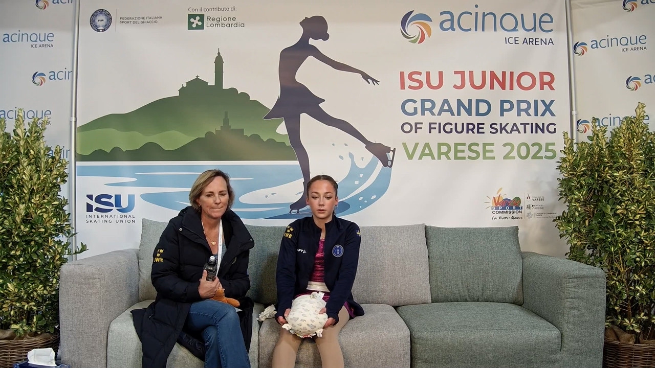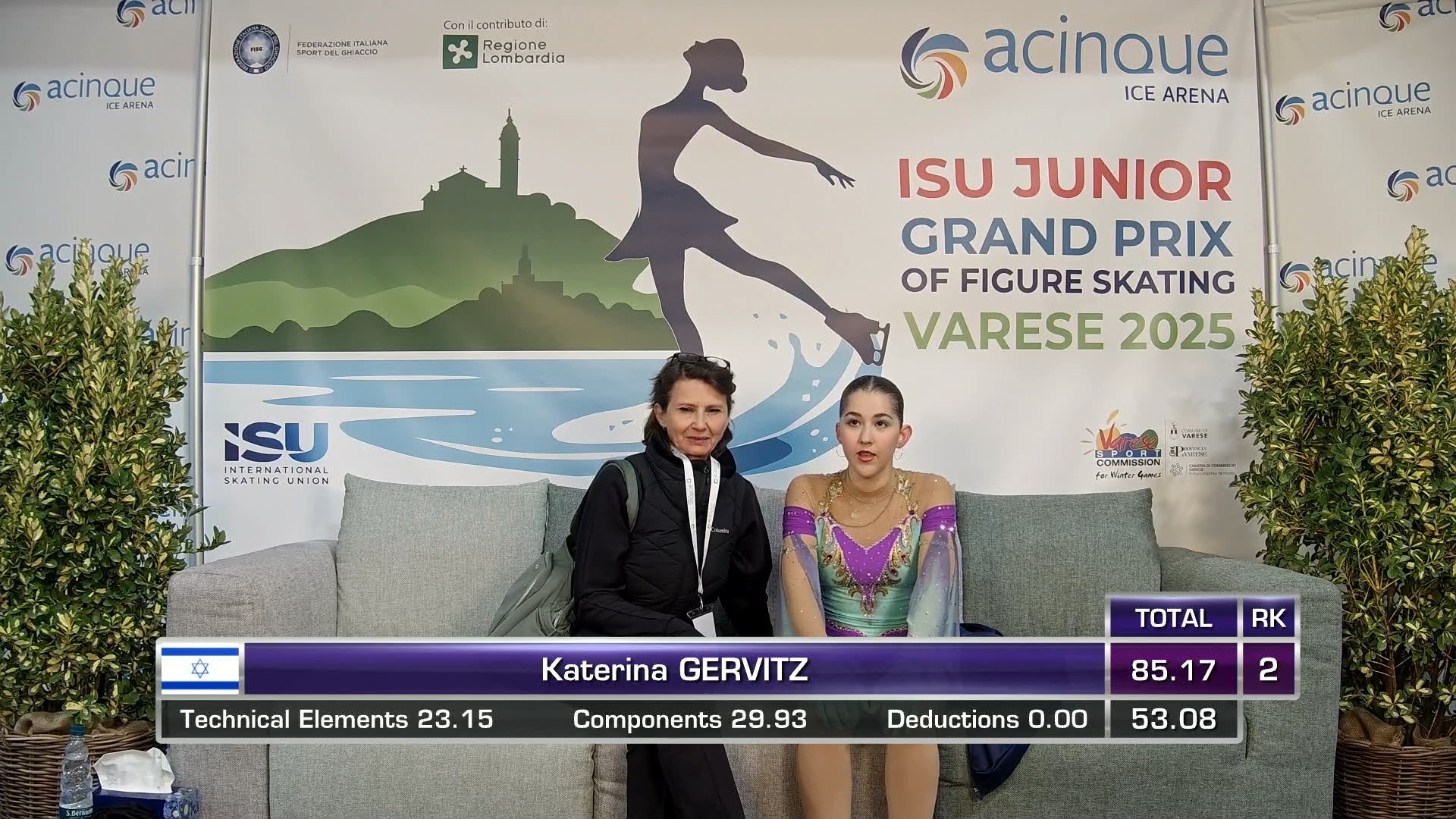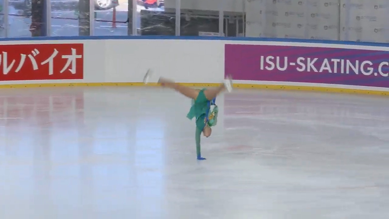 Katerina GERVITZ, 17 лет, первый ГП начинает у борта начинает с вращений - обычно это не к добру, плохой знак 3s< ho 2t кантилевер 2r 1a stsq2 с подъездом к борту и маханием ногой