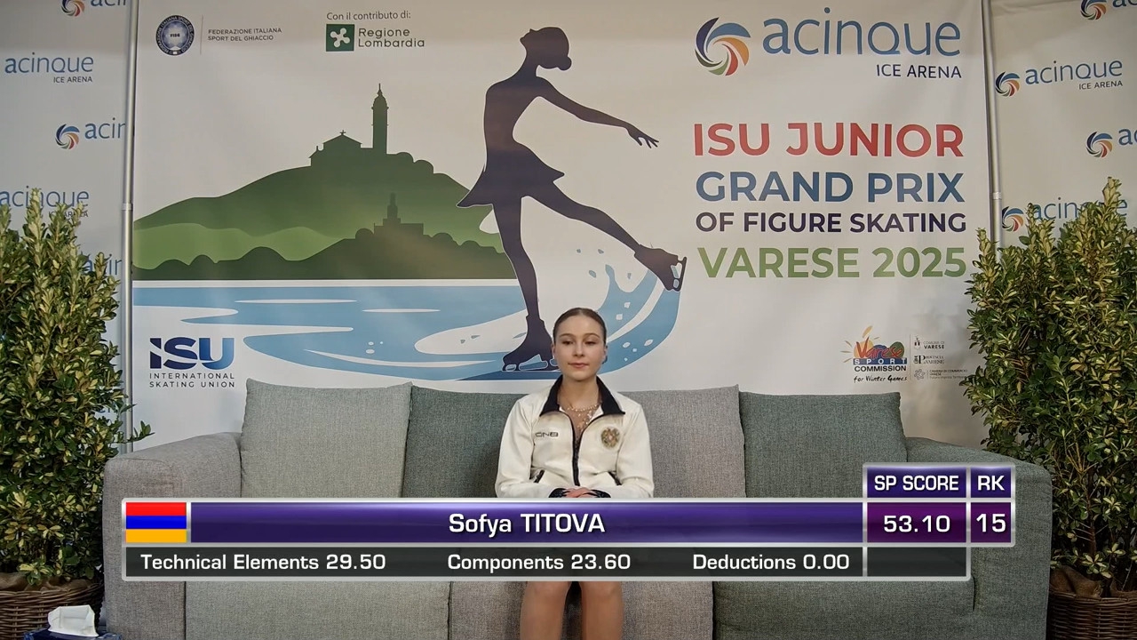 София Титова, 16 лет >Former Coach: Irina Nifontova, Etery Tutberidze >тИтова нарывается на дедашкн за задержку 2a 3zeq?2t2r 3rq? 3s< какой-то отдых посреди катка 3f2t 2f 3s2r первый в недокрут лёгкий типа q, как и полагается армянская прыжковая школа известна в мире chsq1 разбег-прыжок, езда по льду, тренера нет