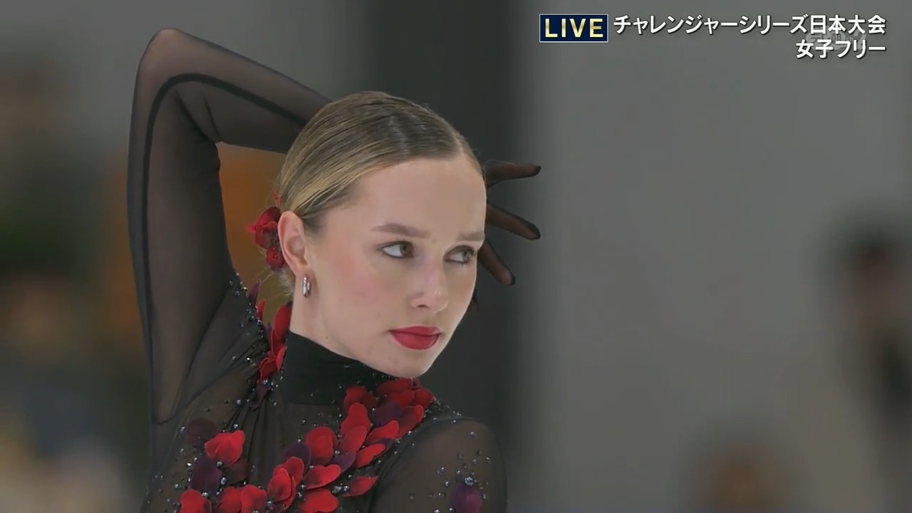 Мария Чернышова, Курган, 20 лет (20.06.2005), Алёна Канышева >previously skated Pairs with Harley Windsor in 2021 and returned to Single Skating after the partnership ended. Ещё одна Курганская парница-одиночница. сейчас получит дедакшн за задержку 3t fall 3f< fall школа Камышка 3r< fall 2a на 2 ноги/so совершенное отсутствие воли к борьбе stsq2 3r<? so 2 ноги +rep 3s< fall 2a<1e2f так и хочется поставить q chsq1 34.48