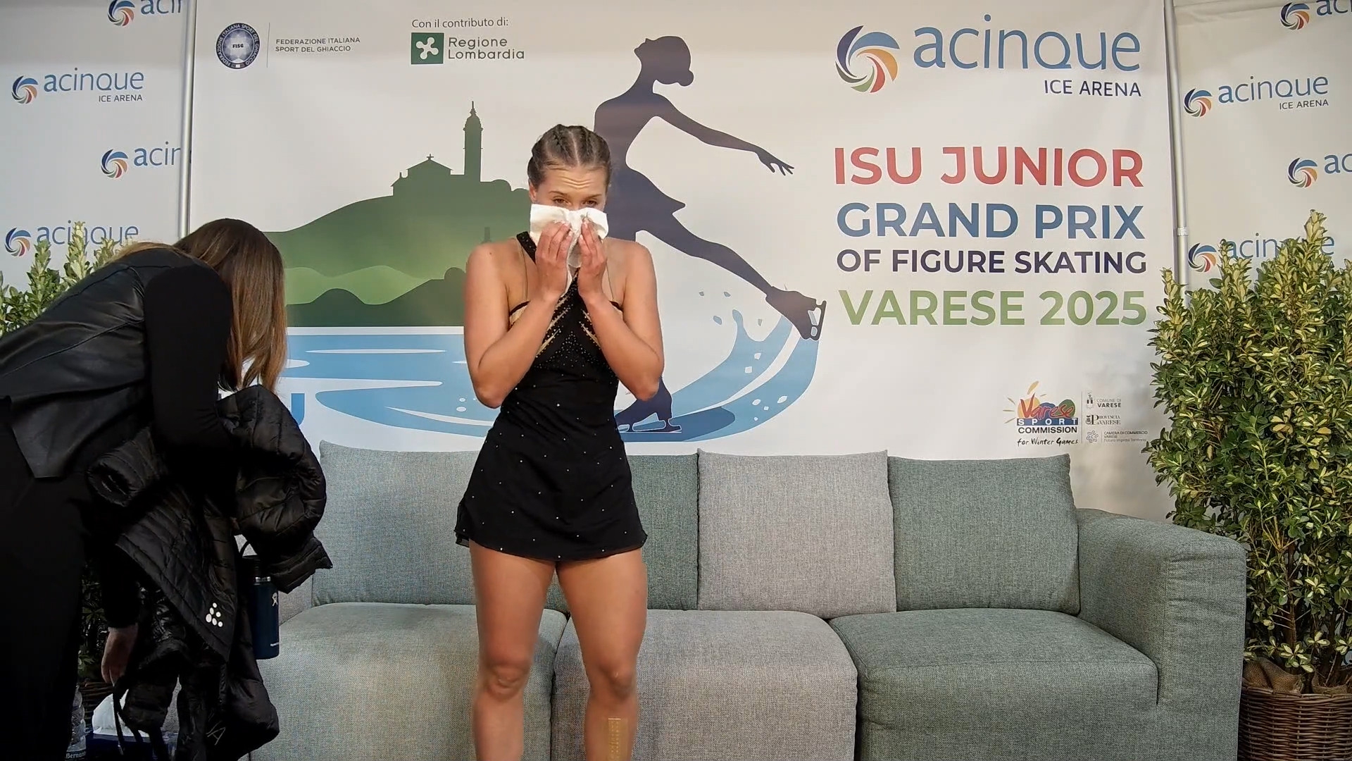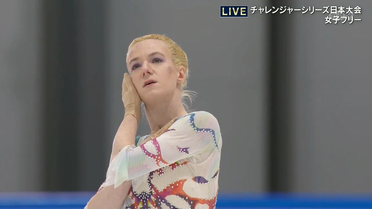 Sonja HILMER тоже банки на лицо ставила что-ли? 3f< so 3ze< 3t chsq1 с гидроблейдом 3f<2t wobbling 3rq so подставила руку fall??? 3rq тройка 1t 1s разорвало, 2 нога, 2aq 2s в обратную сторону (1s + seq +2a+2s поставили) stsq2 со слайдом