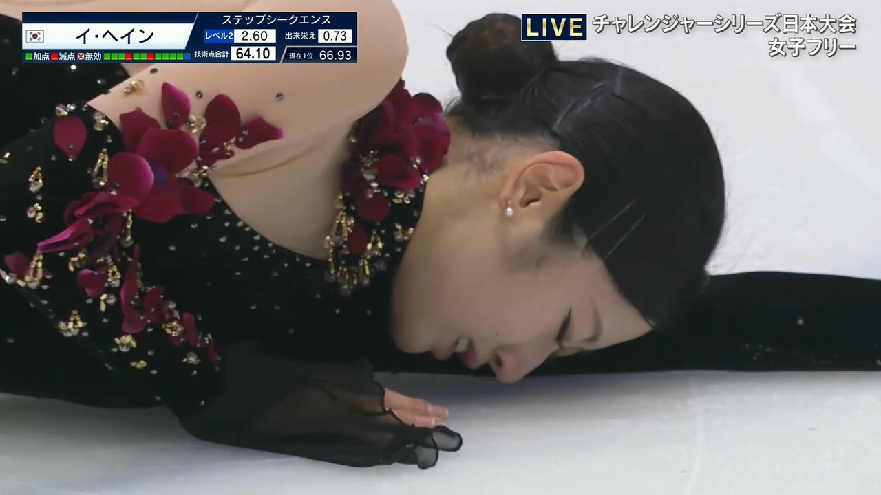 Hana YOSHIDA Хана значит "цветочек" Hana's Odyssey From Sea to Sky 3a<< so 2a3t 3r ho 3f!q? вообще докрученность везде на грани 3zq2t wobbling 2z 3sq2a2tb wobbling chsq1 с гидроблейдом и хореографией stsq4 хорео продолжается на дорожке изображает какой-то часовой механизм, либо время, которое от всех убегает