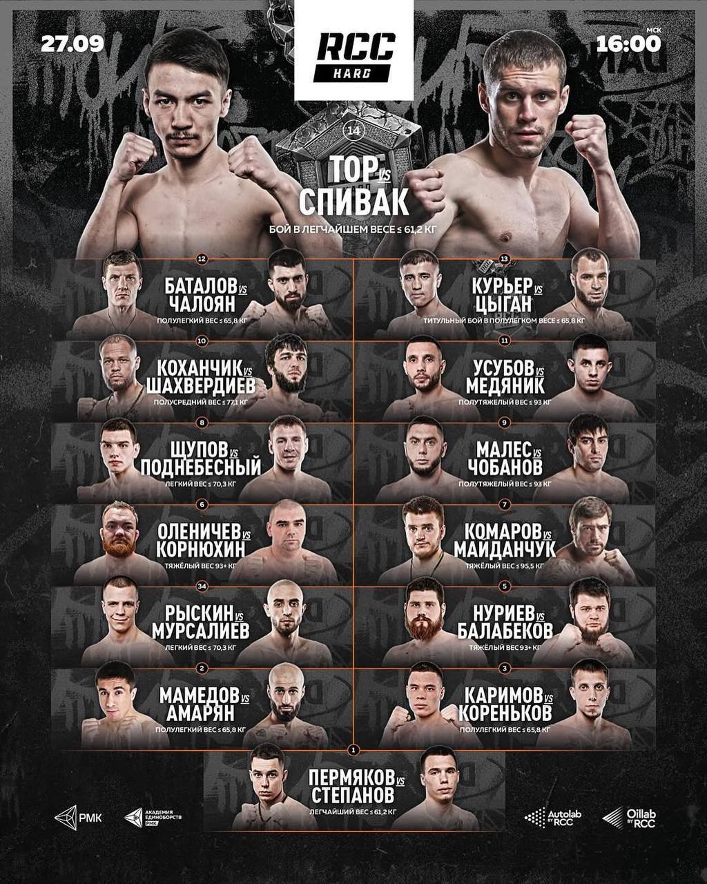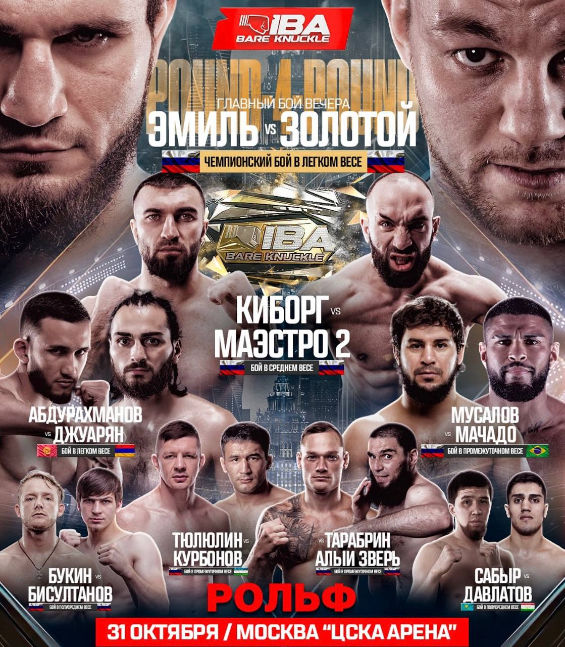 Туманян - Бодров. Победа Туманяна нокаутом. Огнеборец - Татарин. Победа Татарина по очкам. Тандовский - Ялымов. Победа Тандовского ро очкам. Хантер - Шашубай. Победа Хантера по очкам. Чурчаев - Косырев. Победа Чурчаева по очкам.