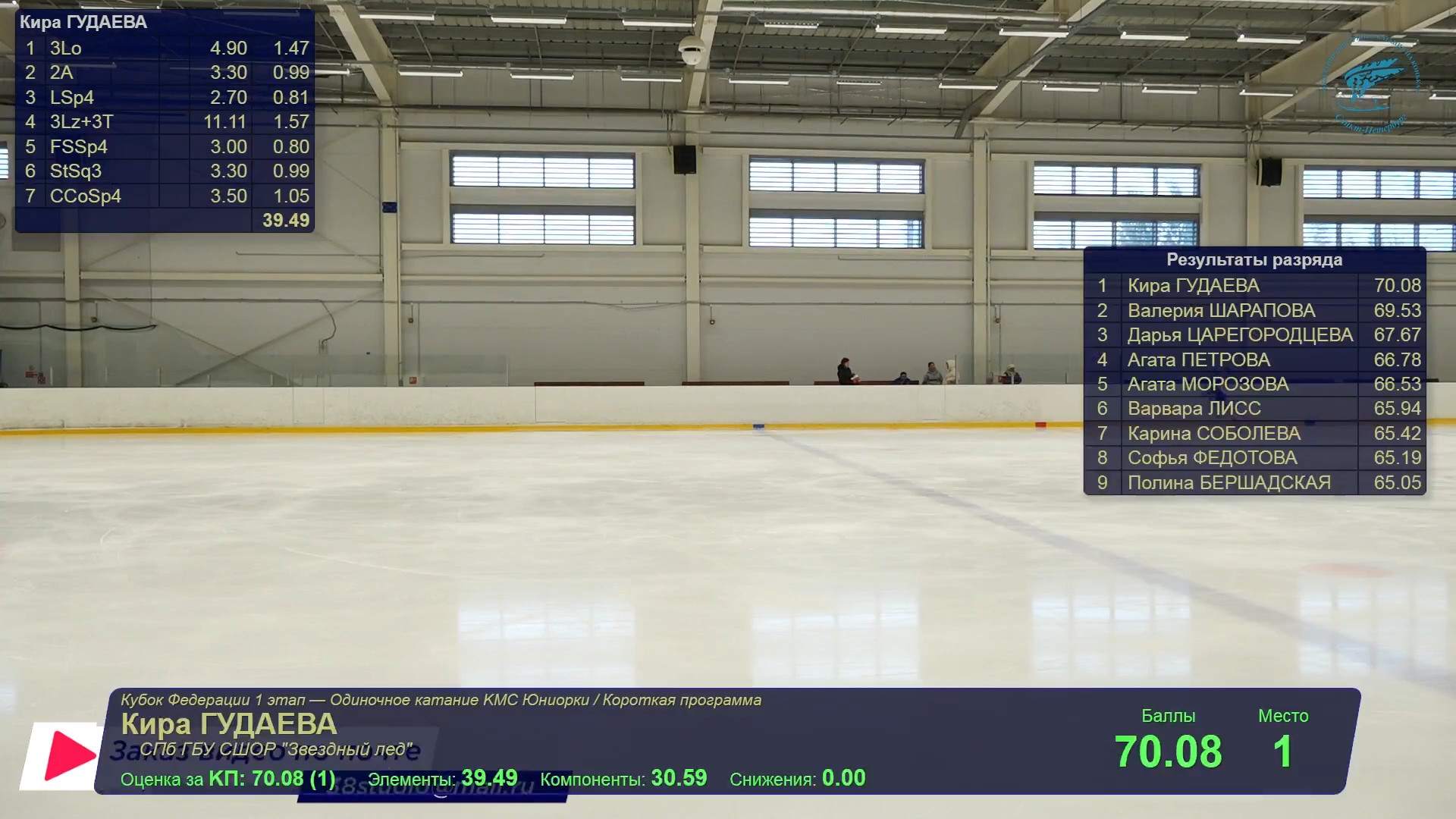 Юлиана Александровна ЧЕРЕНЁВА Удмуртская р., АУ УР "Ледовый дворец Ижсталь на лёд выбежала Значкова, её позвали назад >минуту, наверное >сколько прошло? >спортсмен отсутствует >на лёд приглашается: Полина Артемовна ЗНАЧКОВА г.Москва, ГБУ ДО МАФК школа Хрустальный 3t 3s с гидроблейда, клюнула 3f 3r fccosp с грибочком-комочком chsq1 отжигает 3z!?2a2a 3f<2t 3z2t кувыркнулась в финальную позу, из которой стреляет