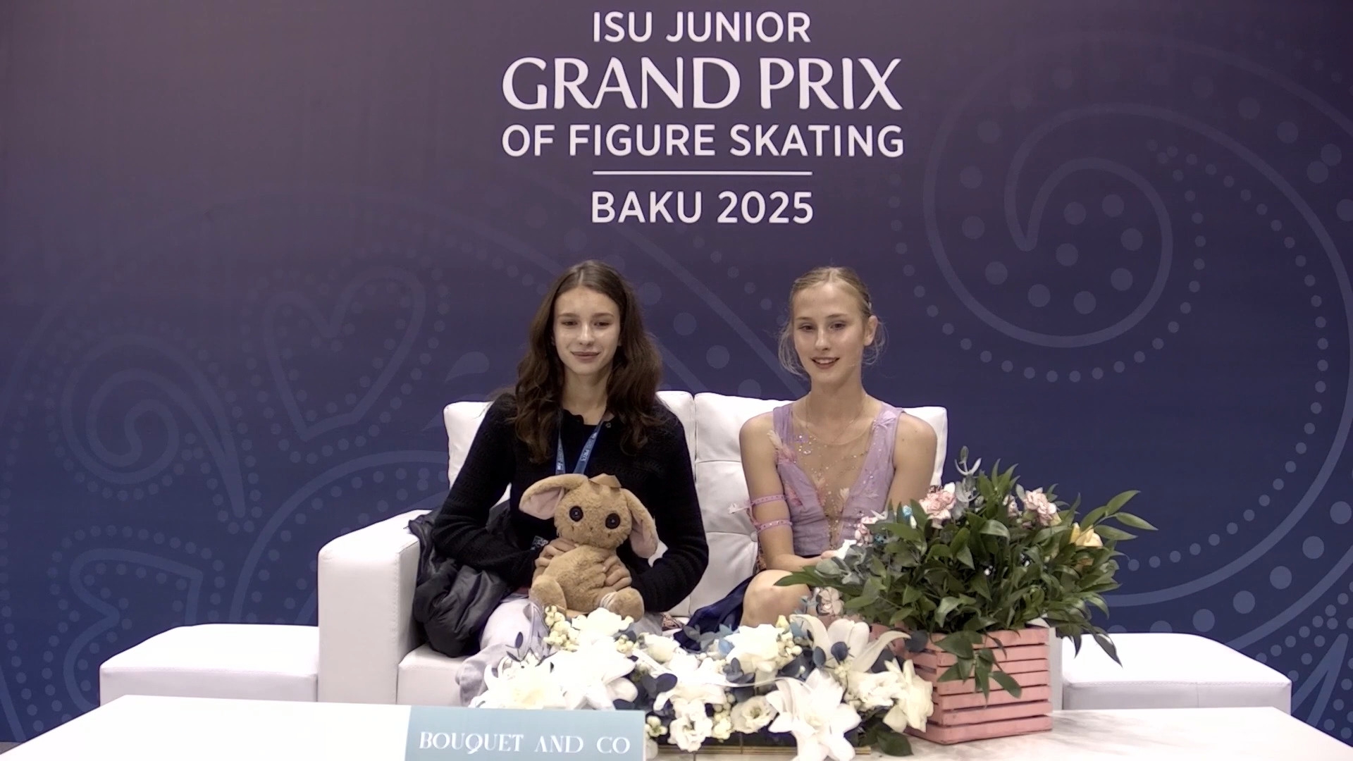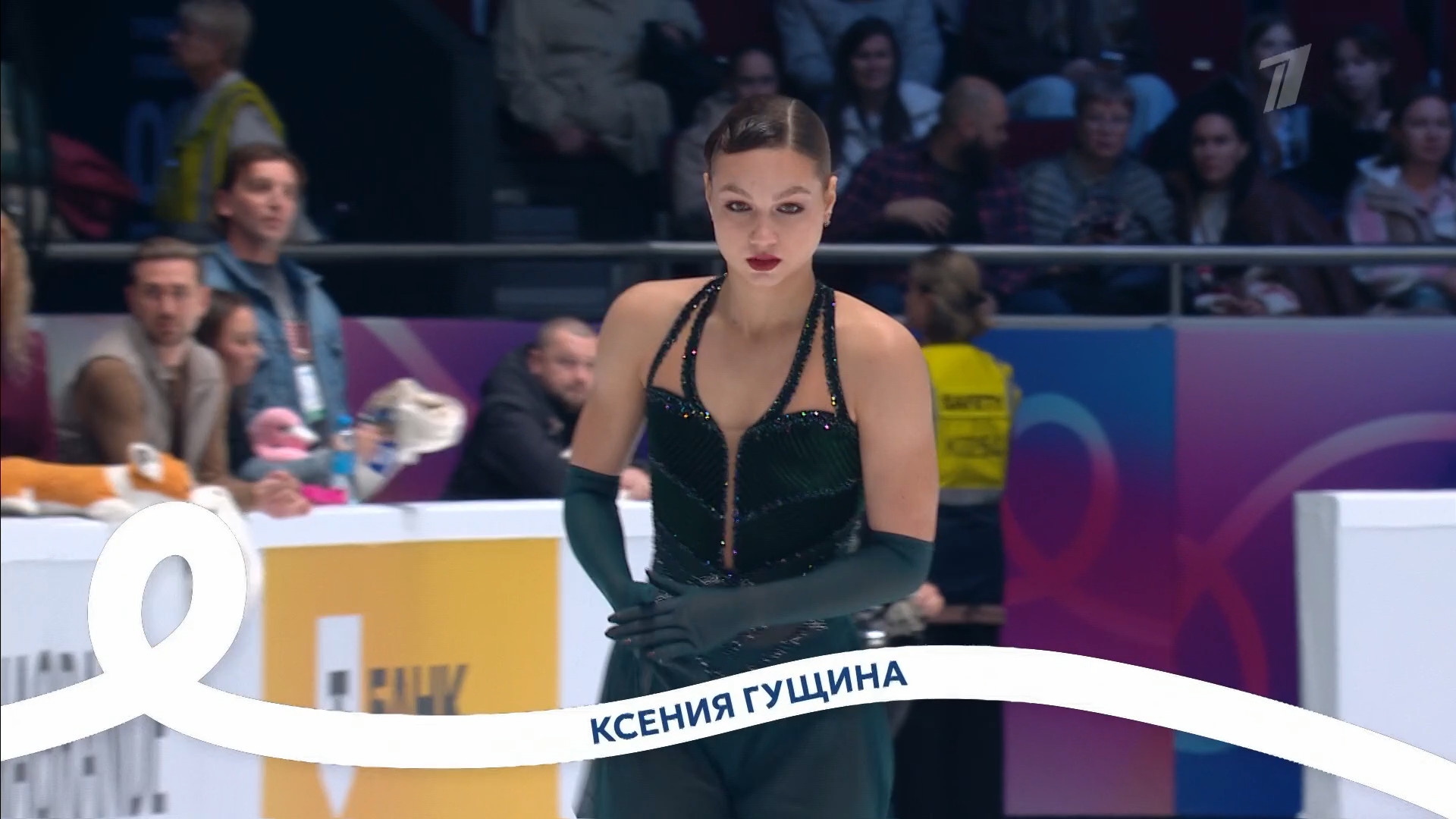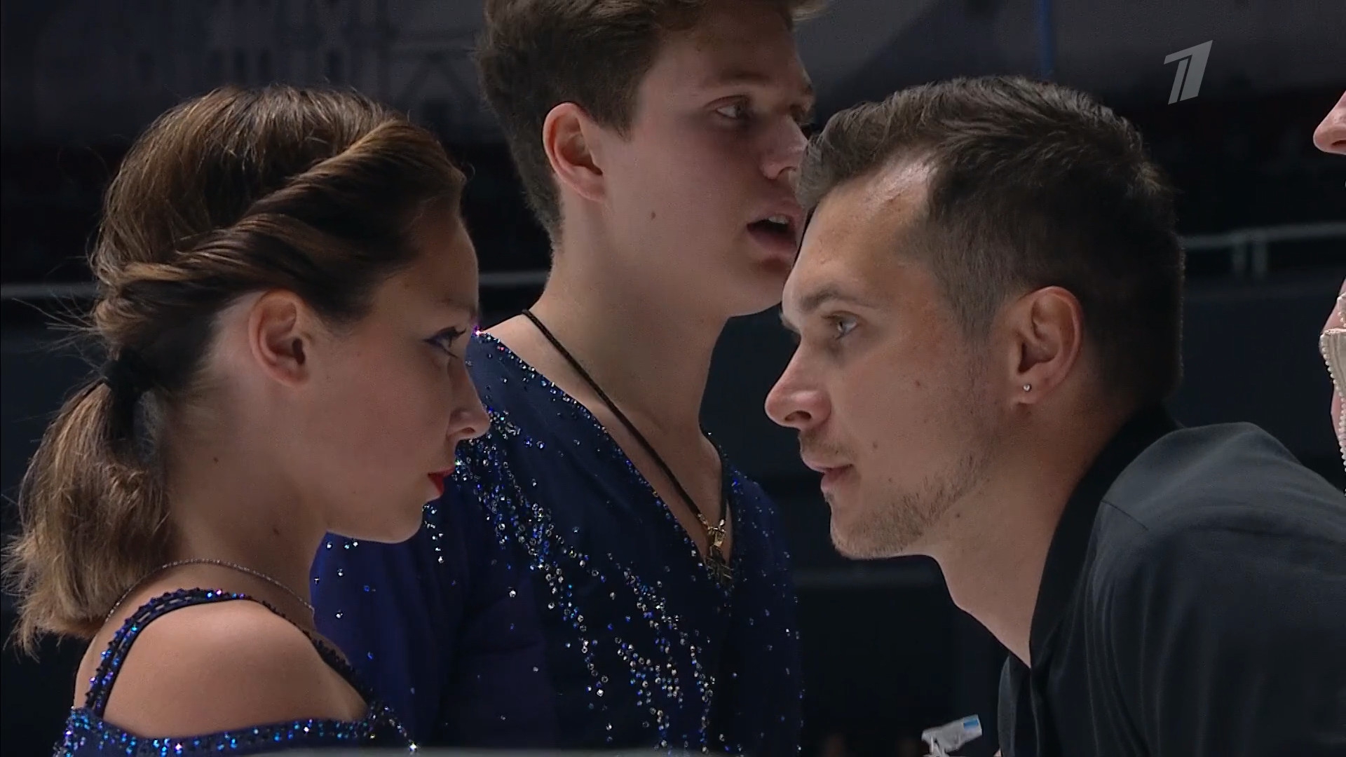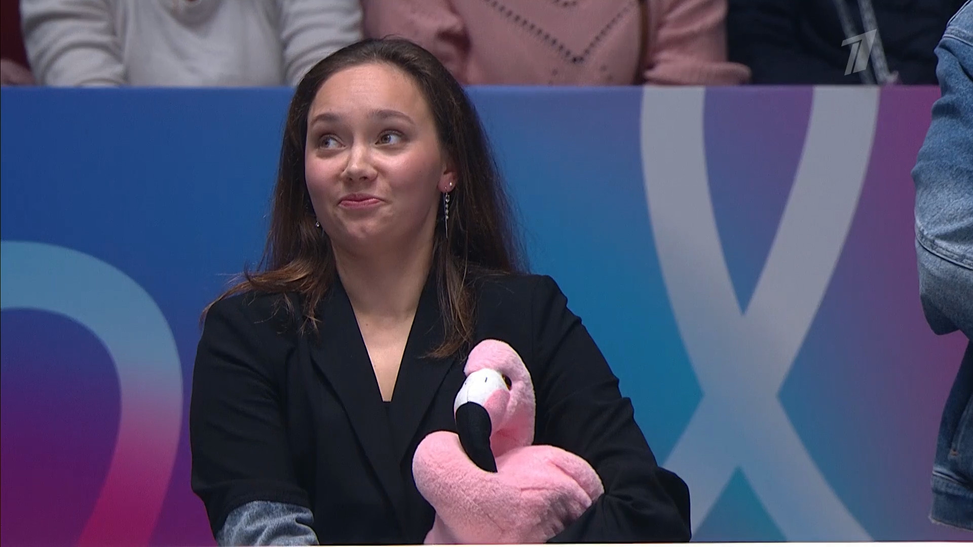 Одна няшка еле откатала свою пп второй раз за день, после чего высунула язык. Вторая няшка выскочила на лёд, ей закричали "куда???!!!" чем рассмешили няшку с микрофоном.