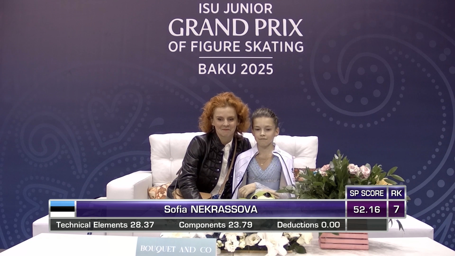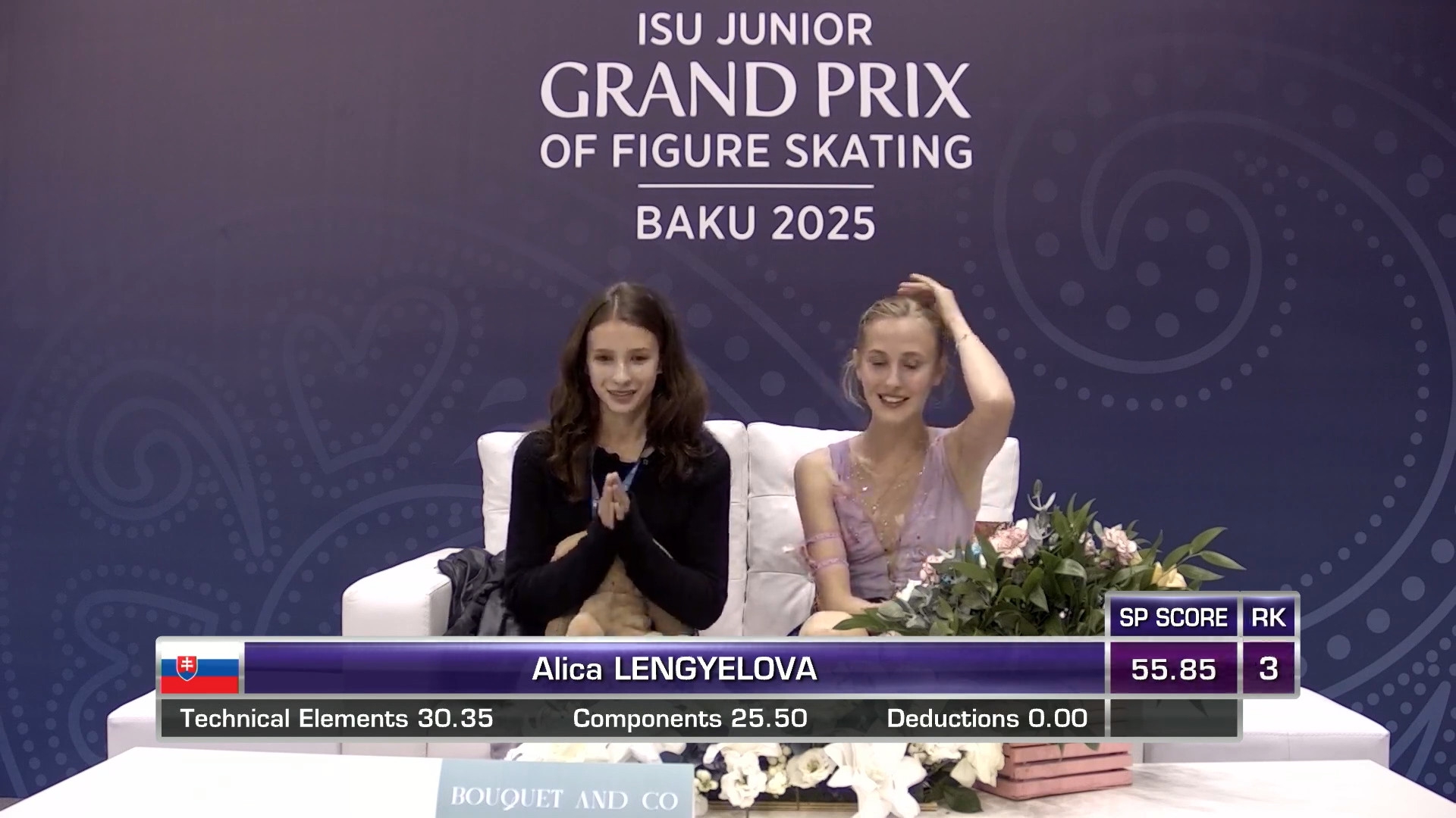 Sofia LAMPRINOU, 14 лет 2a< 2z2t с кантилевера 3r<<? stsq2 с разворотом в слайде на коленях прыжок в грибочек-комочек последним элементом