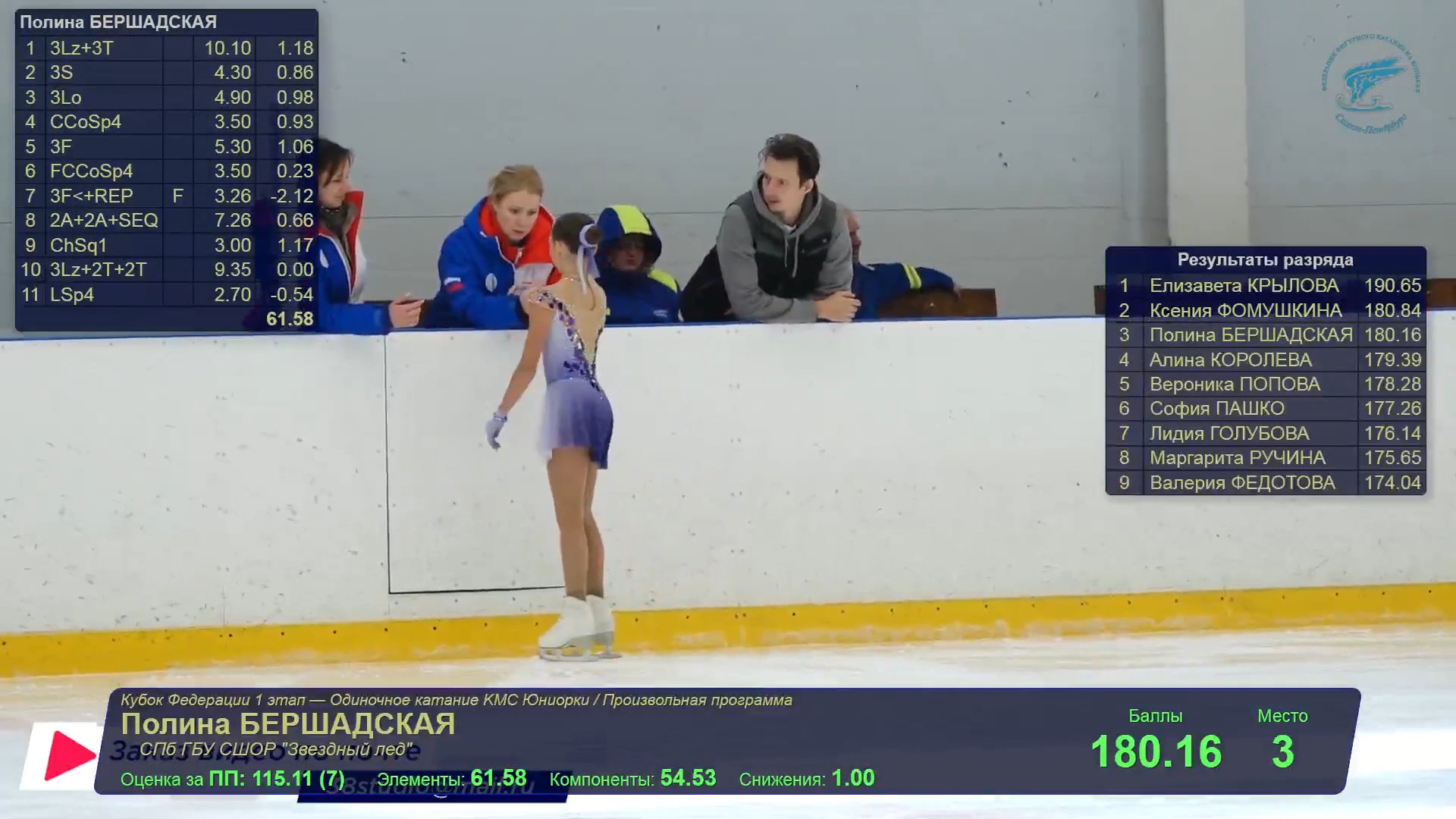 Полина БЕРШАДСКАЯ 3z3t 3s 3r в подпрыжку 3f 3f<? fall. Прыжки на большой скорости у нее получаются лучше 2a2a гидроблейд кантилевер 3z симавыезд +2t2t 61,58