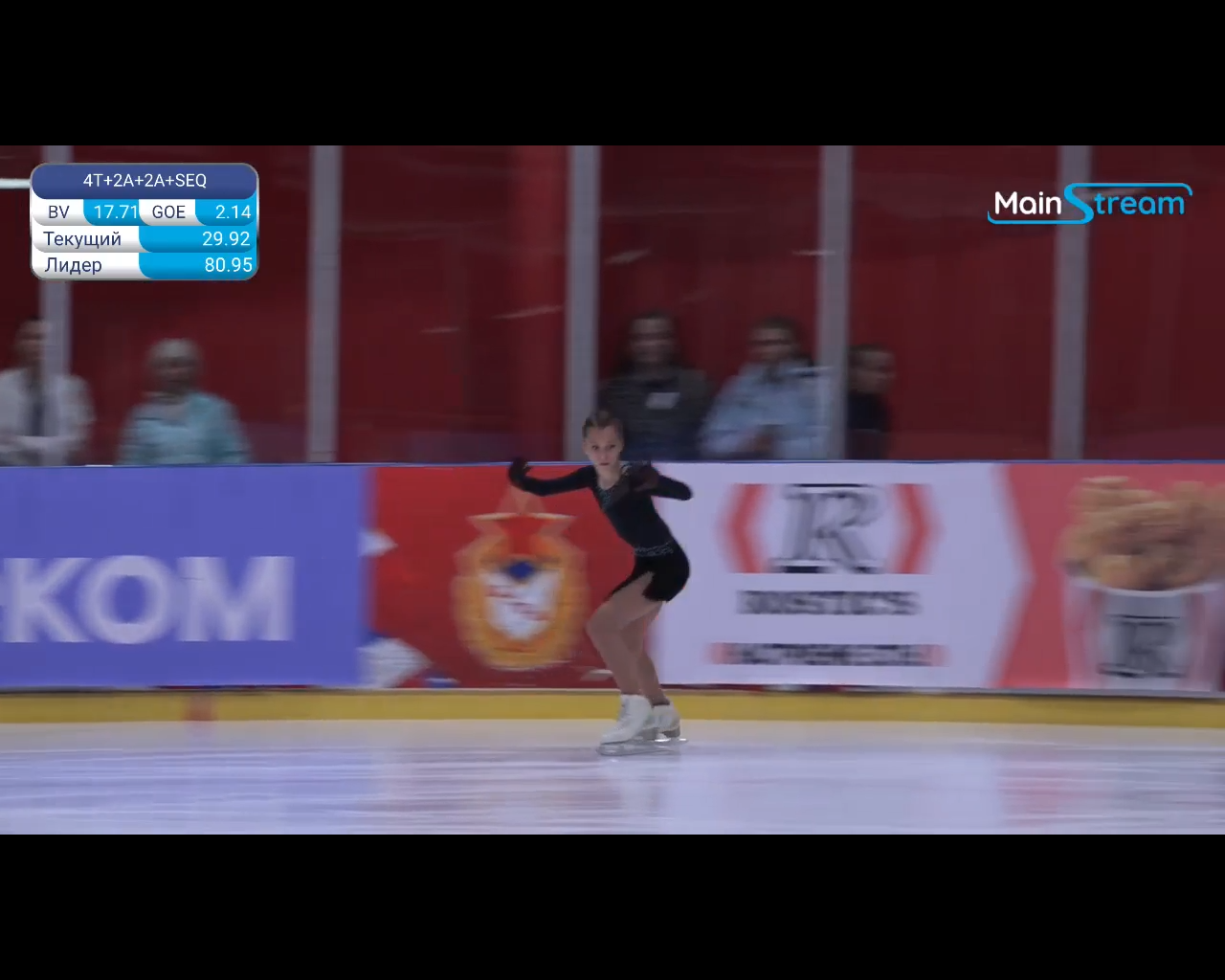 Полина Александровна ГУРЬЕВА Свердловская обл., МБОУ ДО СШ №8 Локомотив Смотрит на куриные крылышки в кляре на борте и надпись "настроение есть!" виляя при этом бёдрами 3f ho 2t 3f< fall перекатилась по льду 3r ho 2a< закрутило, рука, подпрыгнула чуть, 2a 3r< ho 2t 3s ho в полуприсяде chsq1 какой-то обратный слайд, в конце опасно похожий на падение 3t< кубарем через руки fall 2z stsq2