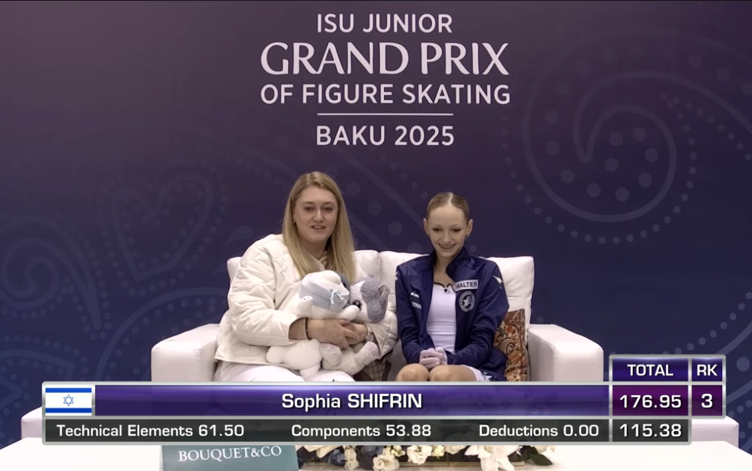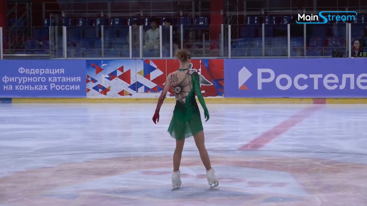 София Шифрина, 16 лет, чемпионка страны по юниорам начинает от борта 3z3t 2a с кораблика показывает в судей пальцами, в дрыг 3r в твизлы обязательный прыжок в грибочек-комочек stsq3 с противоположным бортом