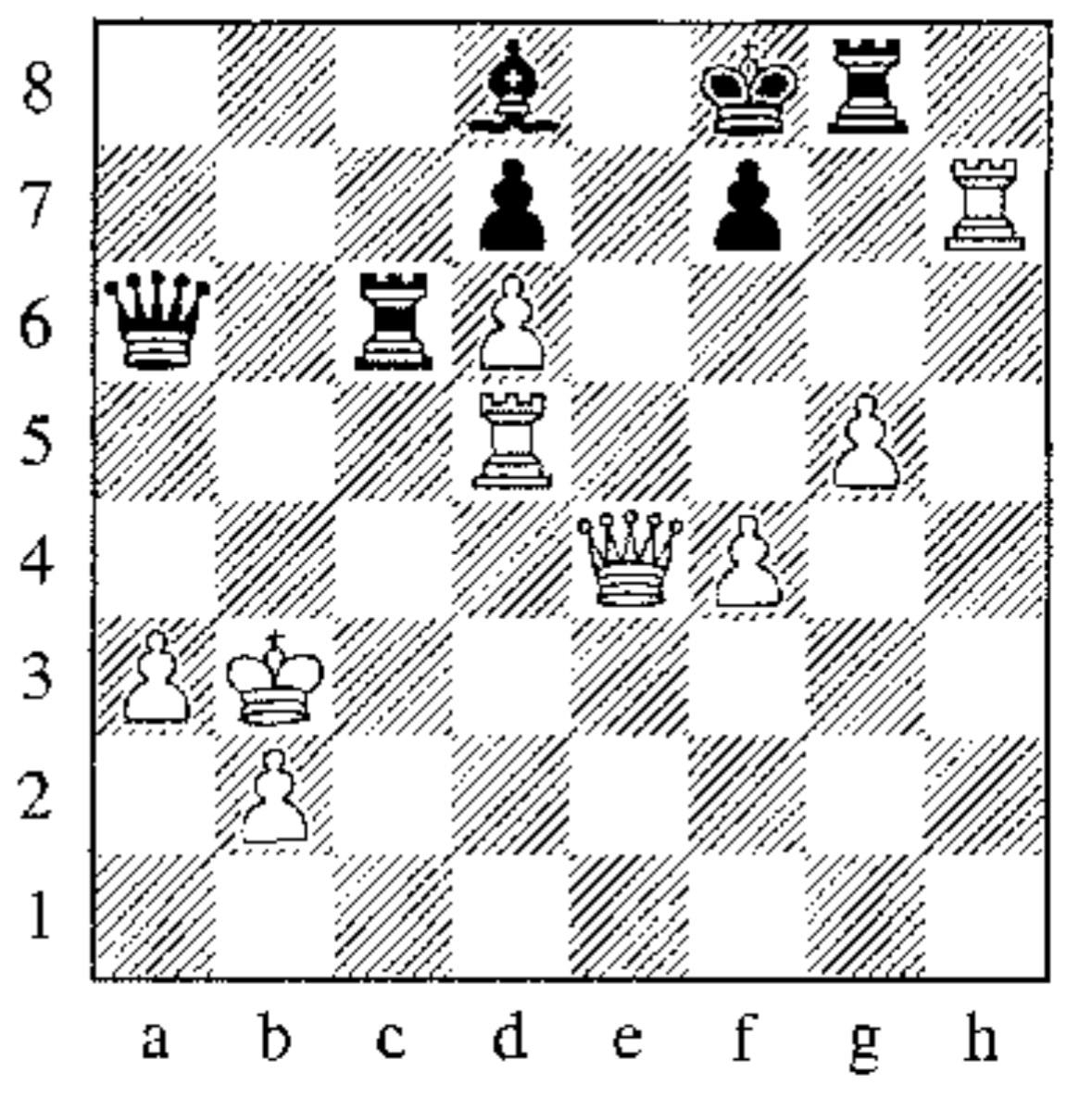 >>3247328 С подсказкой вроде получилось, но часто сбивался, чуть схалтурил, на ходу промежуточное решение записывал. 1. Л:f7+ Kр:f7 2. Фf5+ 2 на ..Сf6 3.Ф:f6+ Крe8 4. Ле5x 2 на ..Кре8 3.Ле5+ Се7 4. Ле7x 2..Крg7 3.Ф:d7+ Крh8 4.Фh3+ Крg7 5.Фh6+ Крf7 6.Лf5+ Кре8 7.Фе6+ и мат следующим ходом. Крутая задачка, красивая геометрия ферзя.
