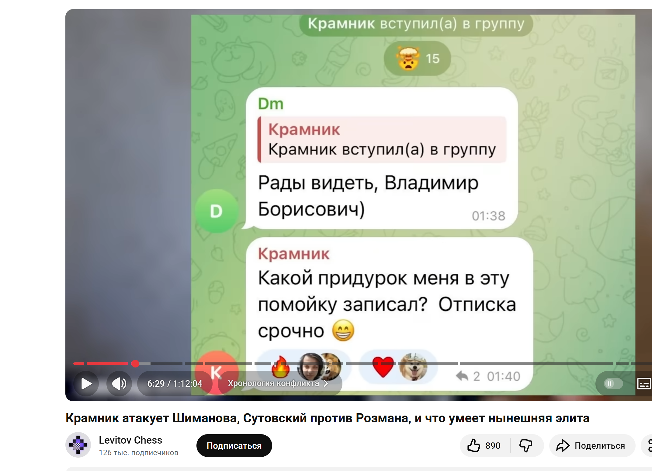 Печальная ситуация. Один напорол беспруфной херни, другой слишком близко воспринял ее к сердцу. Если честно, я думал что эта ситуация Крамник-Народицкий уже улеглась сама собой, но оказывается нет.