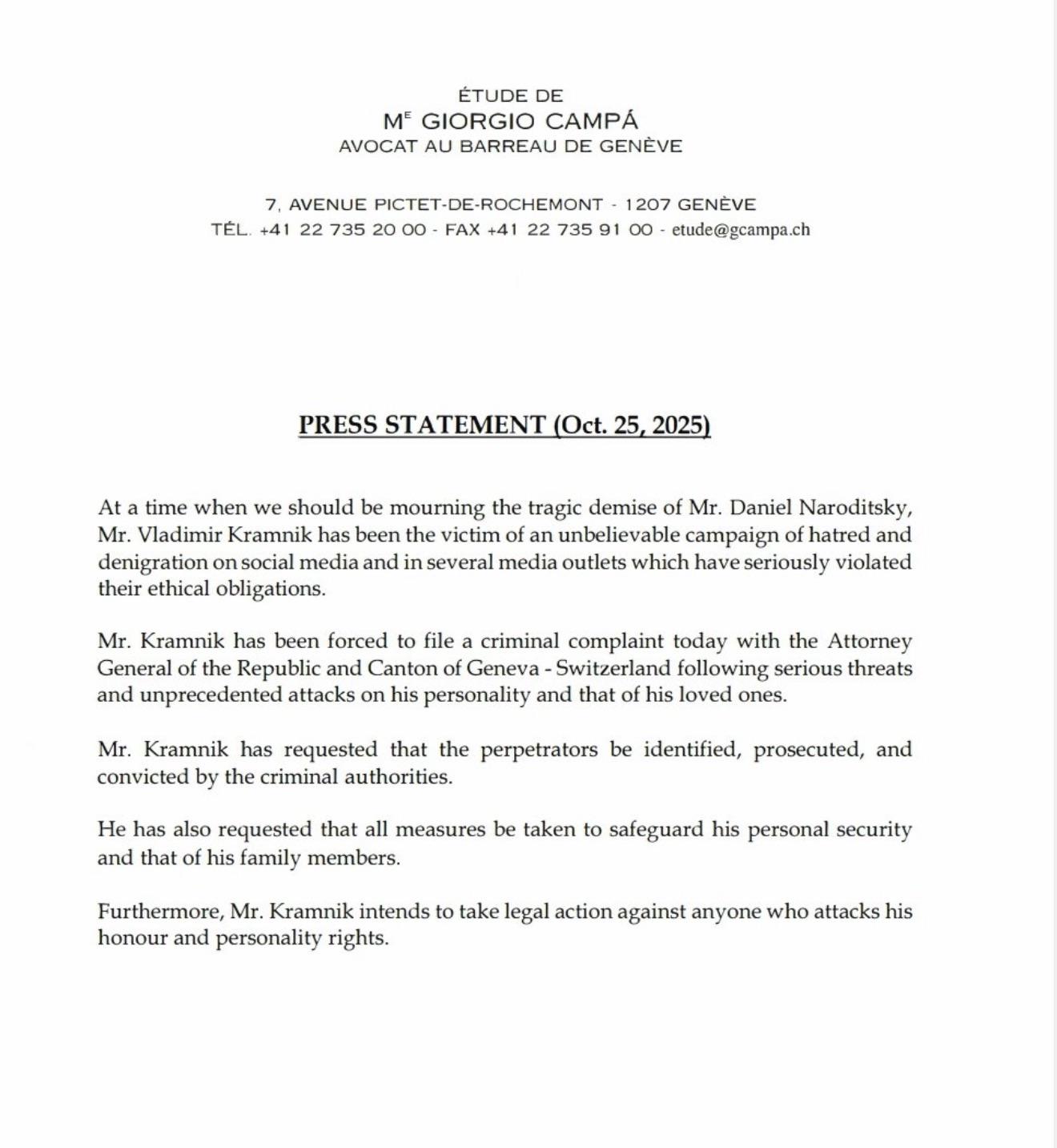 4. Некоторые провокационные заявления публичных фигур, иногда переходящие в откровенно ложные и криминальные обвинения против меня в связи со смертью Даниэла, которые привели, среди прочего, к угрозам безопасности мне и моей семье, а также к нарушениям моих личных прав, станут предметом уголовных и гражданских исков, которые в настоящее время готовят мои адвокаты.