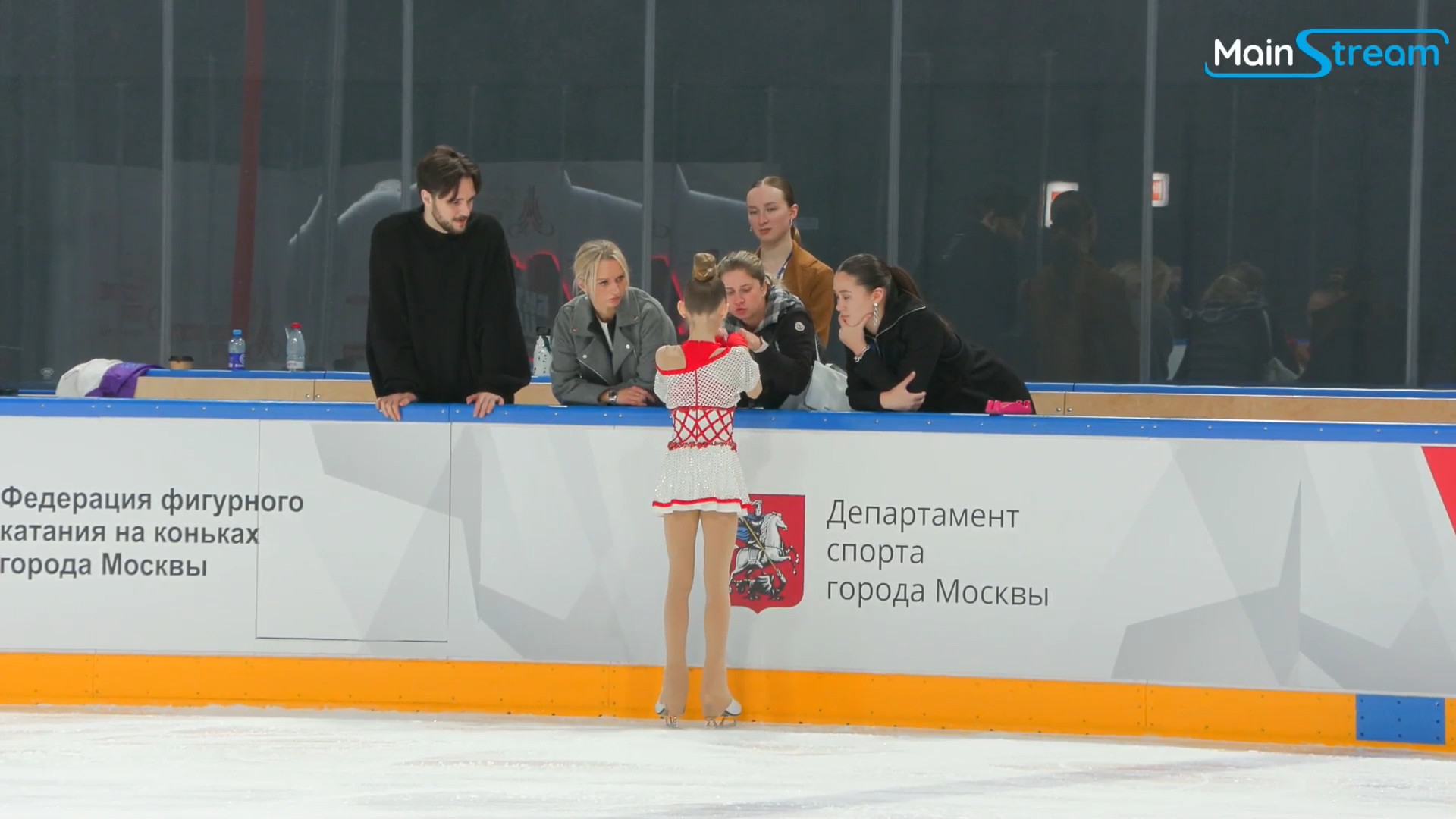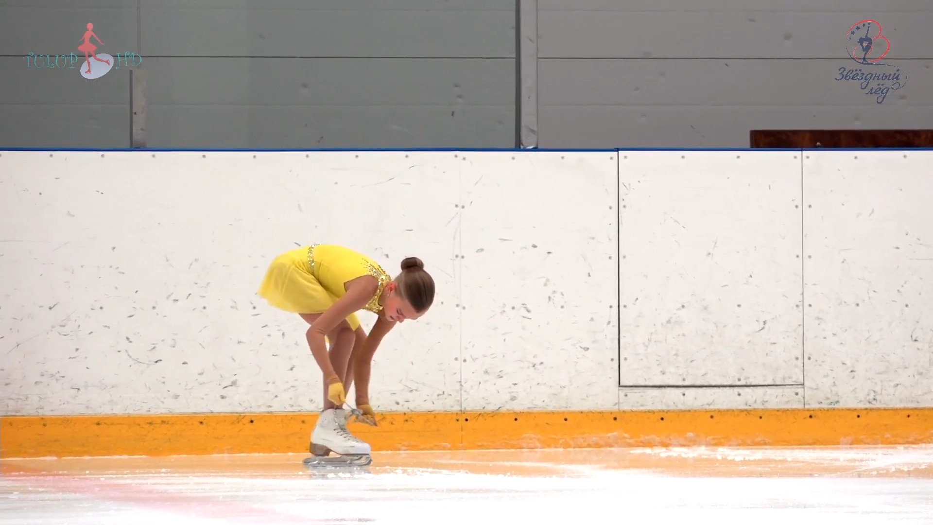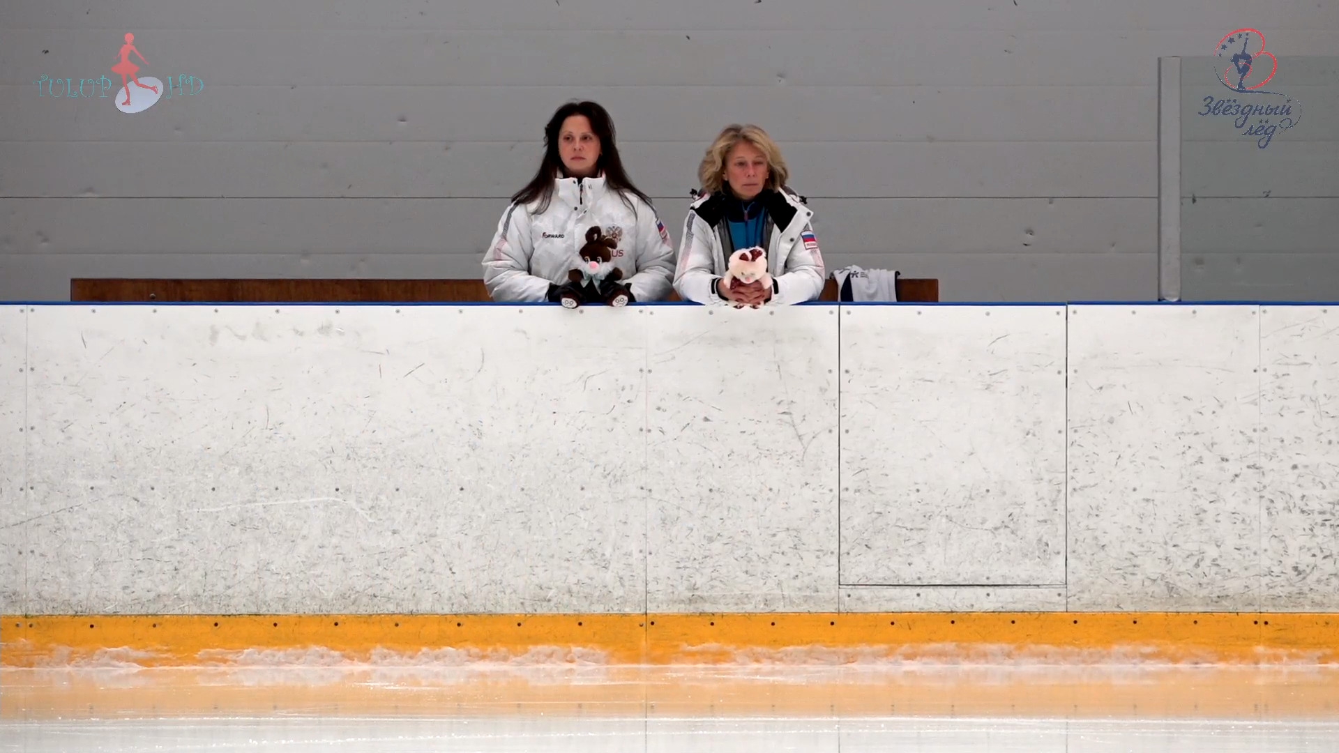 Елизавета Николаевна ЧЕРНЕНКО с А.Ю. СПб, МО Введенский СПБ ГБУ ДО СШОР "Звёздный лёд" жёлтый lalaland с жёлтыми перчатками 2a ho с А.Ю. захода 2z 2a2t ho с А.Ю. захода chsq1 бежит на зубчиках развязались шнурки на chsq1, завязывает у борта и заскакивает в калитку. музыку выключают. На скамейке ей завязывают шнурки. Самая завязать шнурки не может судя по всему. продолжает chsq1 прыжок в шпагат 2f 2z2t закрутило в тройку 2r ho прыжок в шпагат 2f so