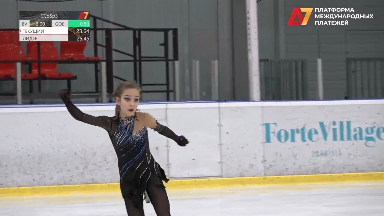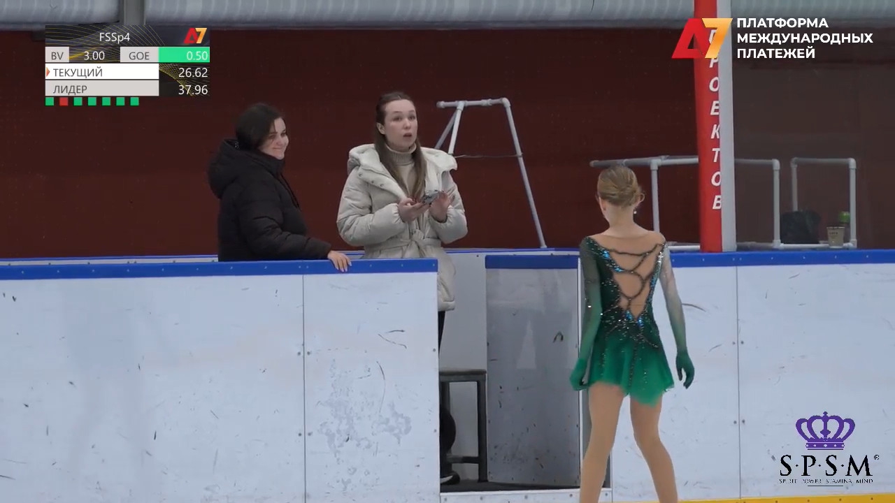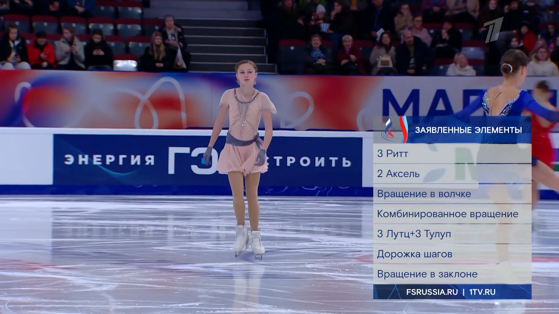 Ксения Алексеевна ФАДЕЕВА Московская область, СШОР им. Ю.Е. Ляпкина у борта 3z3t ho 2a 3f! ? 3sq?/<? chsq1 скребёт рёбрами в микрофон, разворот в слайде 3z с шарлотты, пауза 2a 3r<?2t2t 3r<? stsq1
