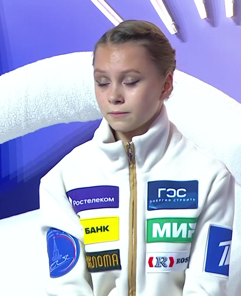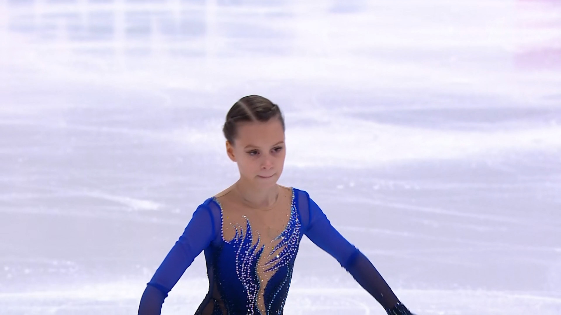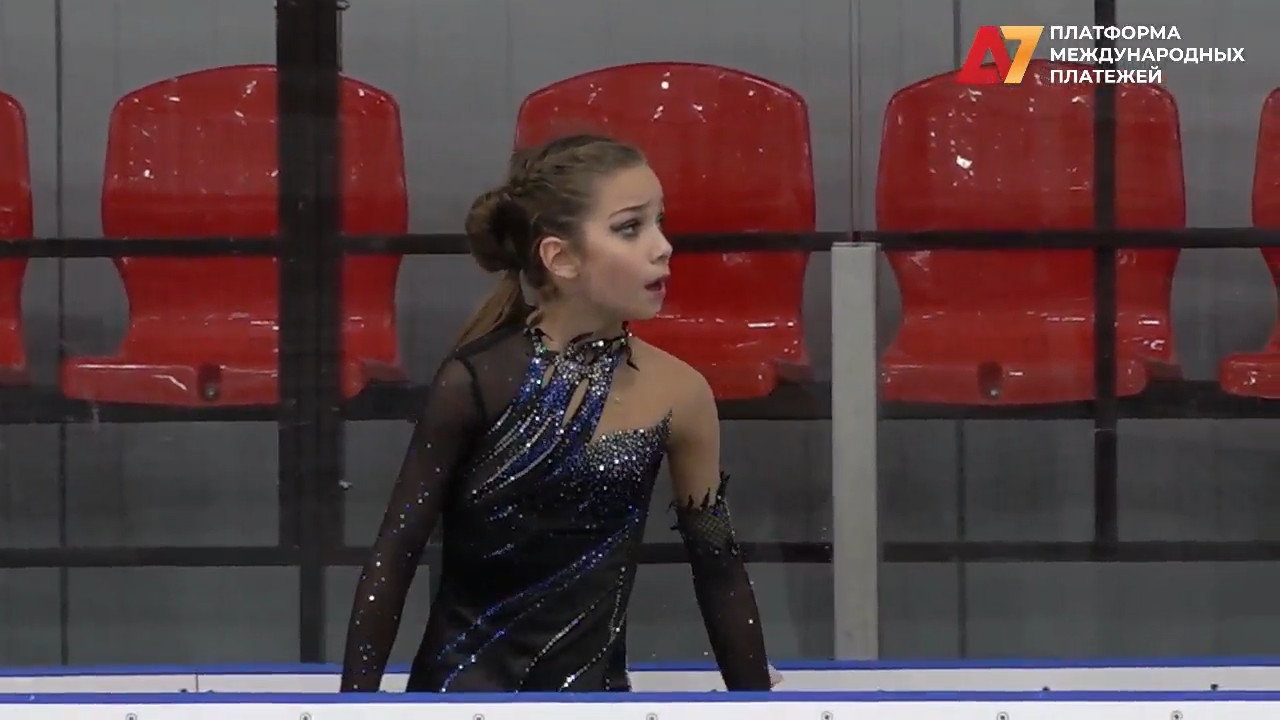 Кира Викторовна ГУДАЕВА Санкт-Петербург, СШОР "Звездный лед" 2a 3s 3z с пвш 3r со спиральки 3z3t 3f2t2a 3f закрутило, подставила зубец второй ноги, 2 ноги 2t fall кубарем самое глупое что можно было сделать chsq1