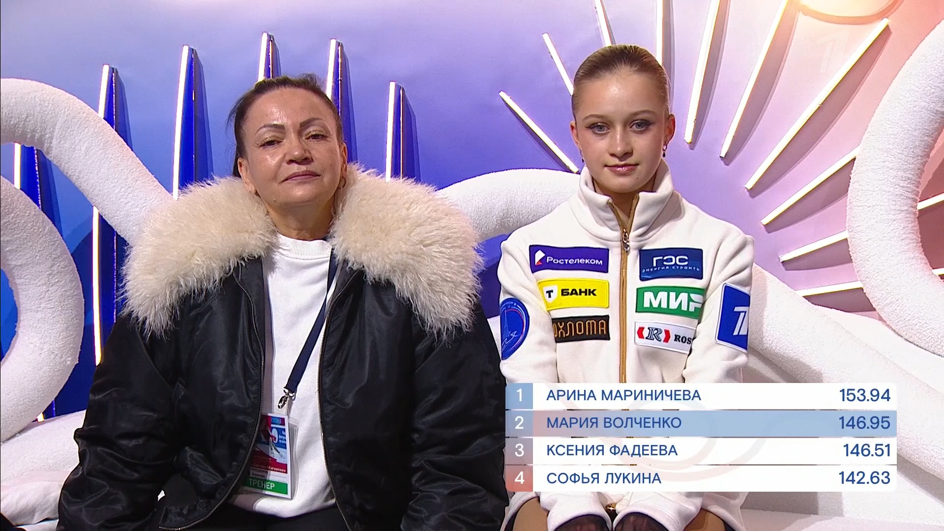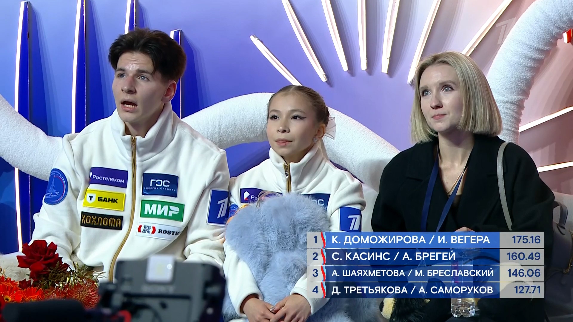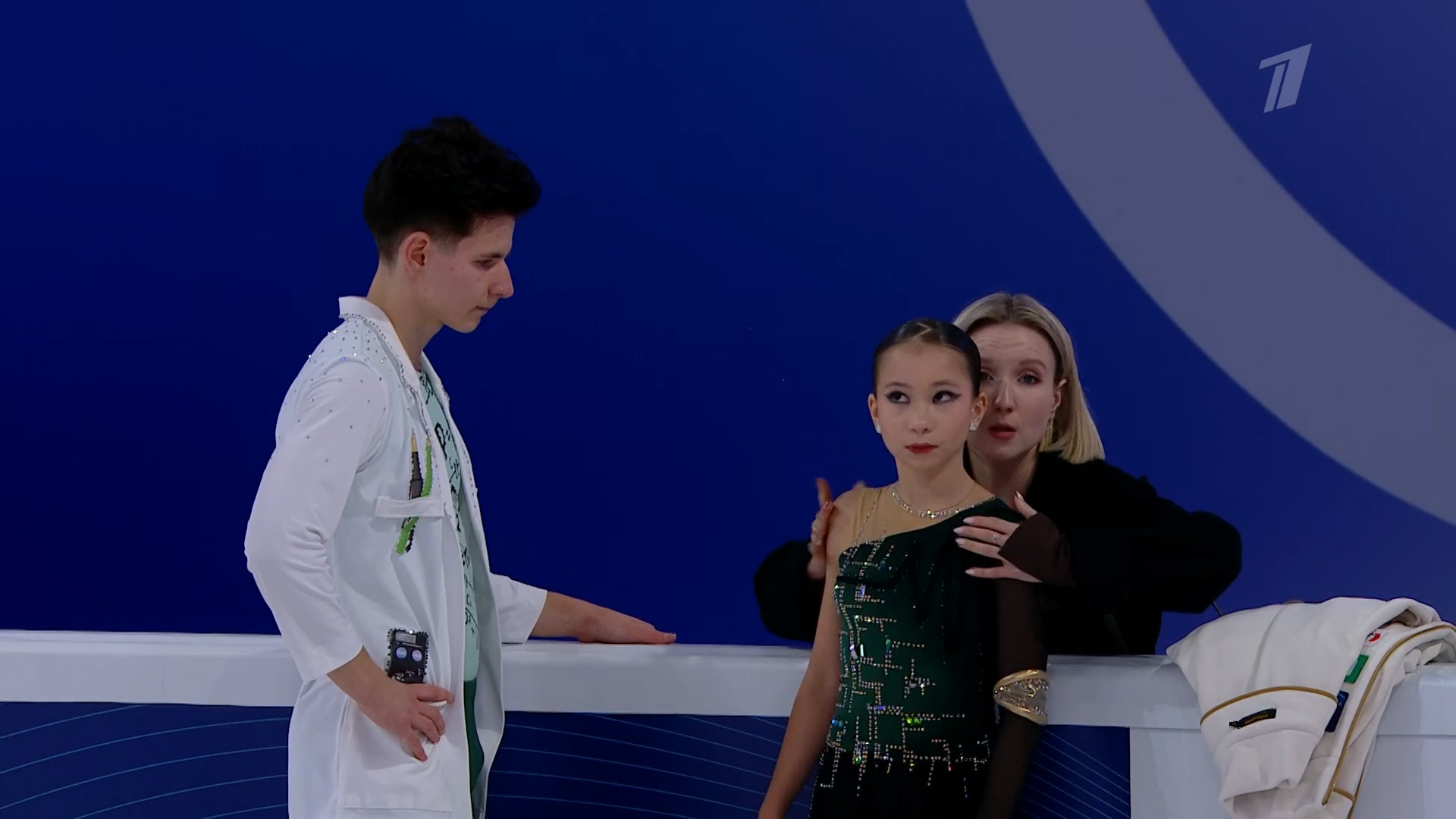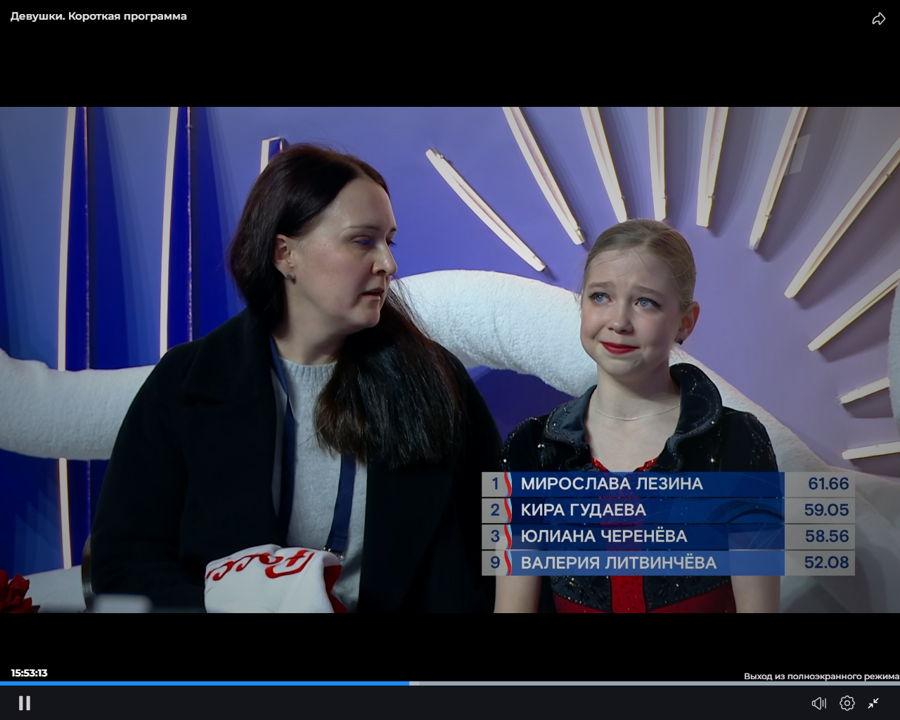 Мирослава Дмитриевна ЛЕЗИНА с Булычёвой Московская область, ООО "Центр спортивных технологий" 2a wobble? с захода Лезиной в кораблик 3r >one! two! cha-cha-cha! >cha-cha-cha! 3z3t постоянно какие-то фильтры на льду то включаются, то отключаются (3z!) stsq3 ревёт от эмоций