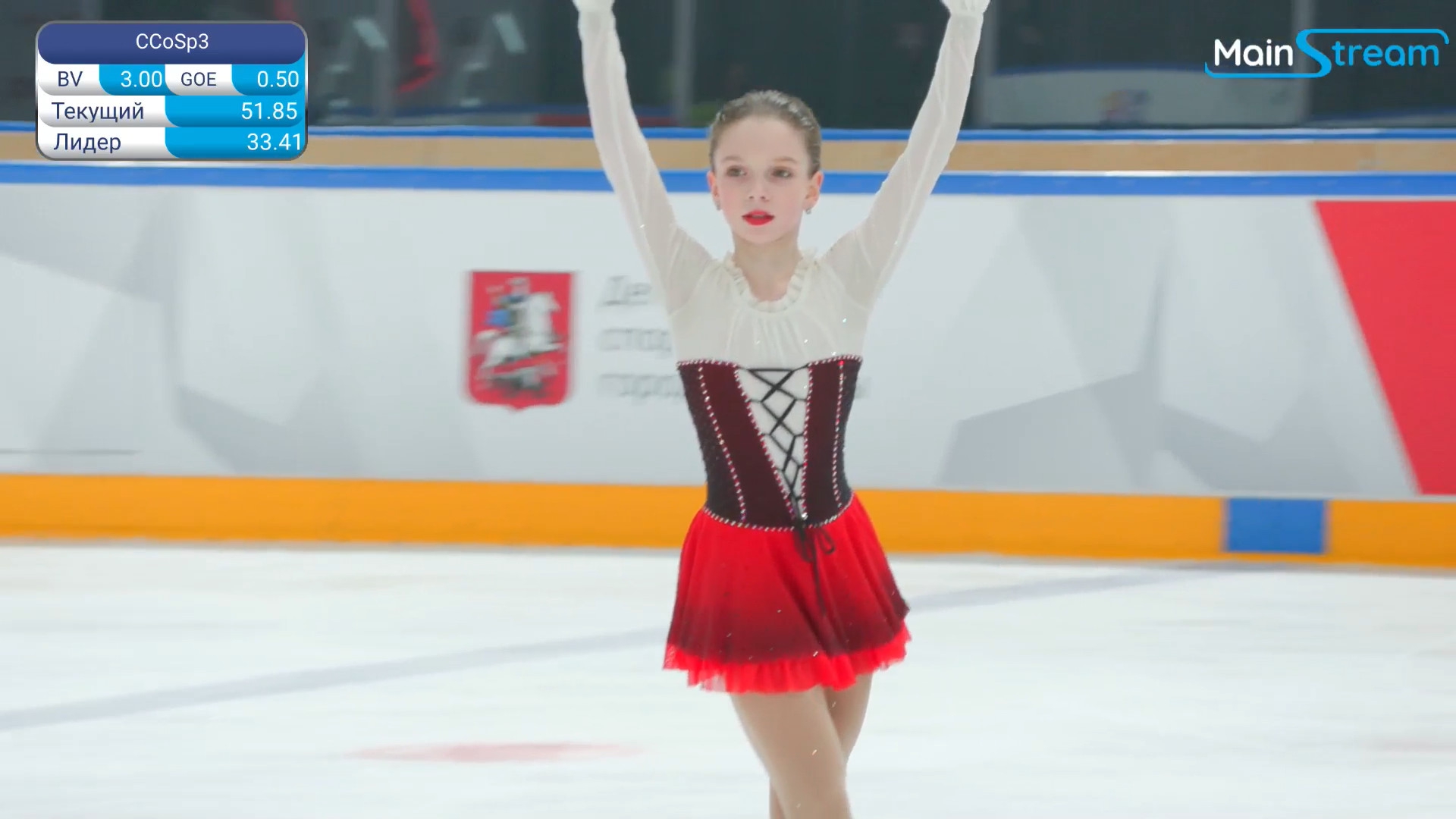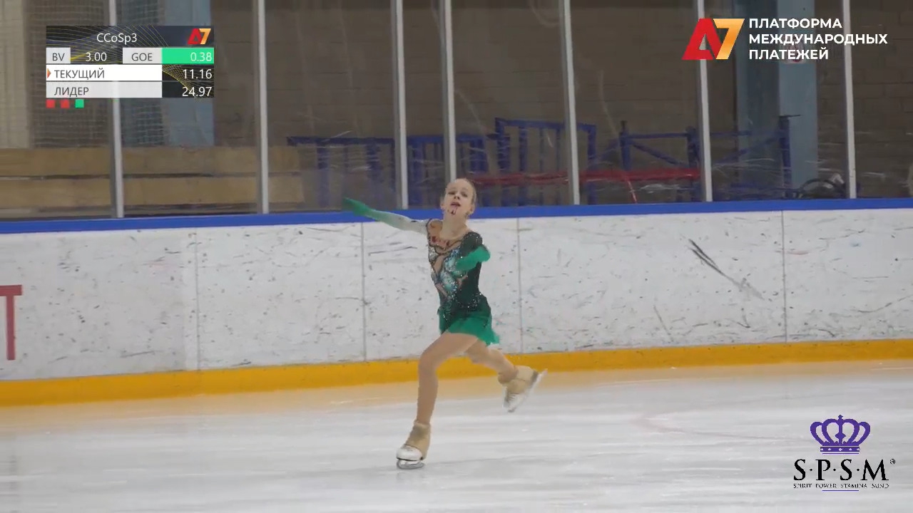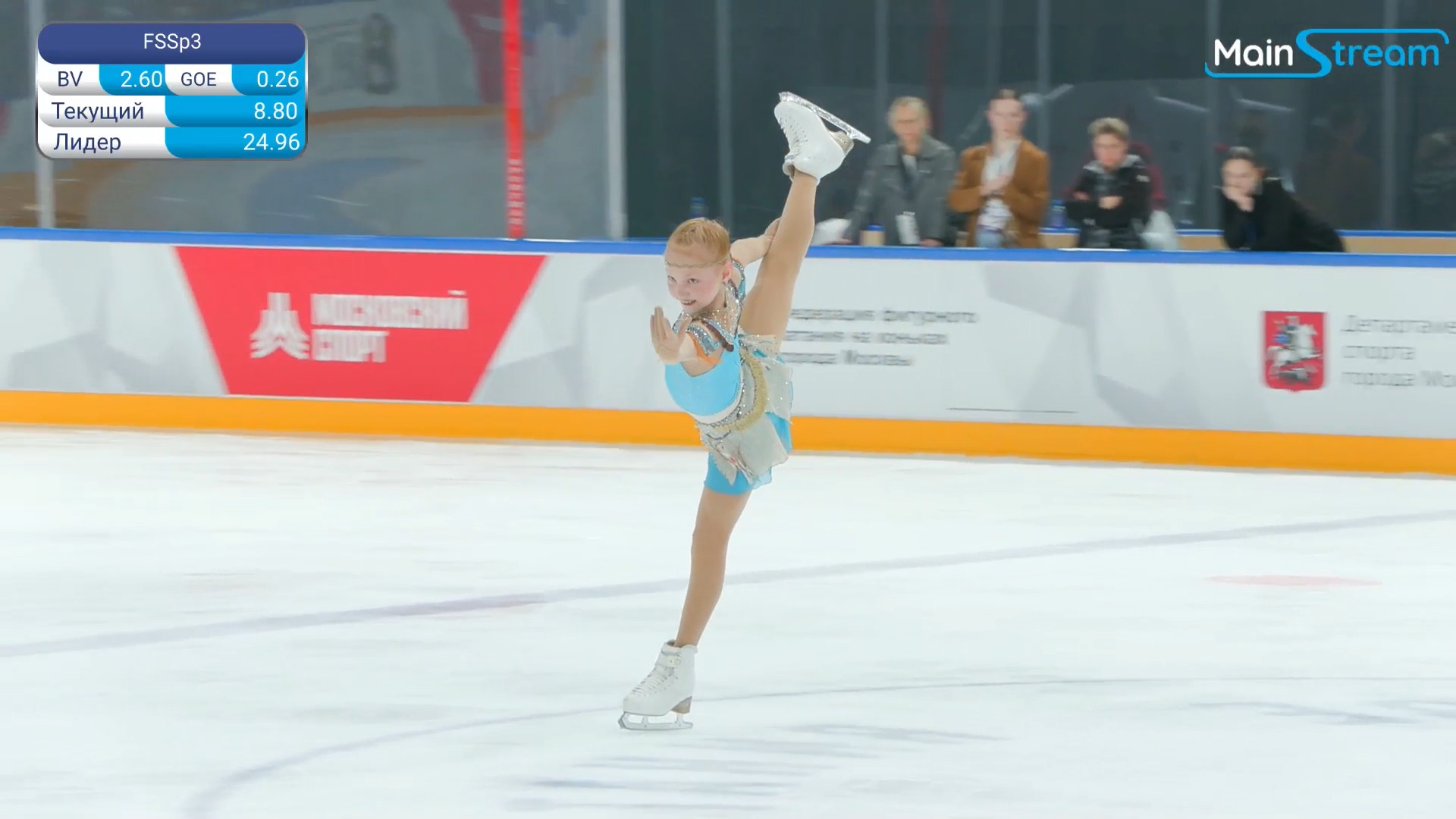 Елизавета Васильевна НИКОЛАЕВА г. о. Одинцово, ООО "АФК "Ангелы Плющенко" - ГБПОУ МО "Уор №1" 3s 3f!? в твизлы 3r so замаскированный в сложный выезд, Ханю бы такому поучиться 3z3t в подпрыжку 3z2a2a 3f2t chsq1 кантилевер