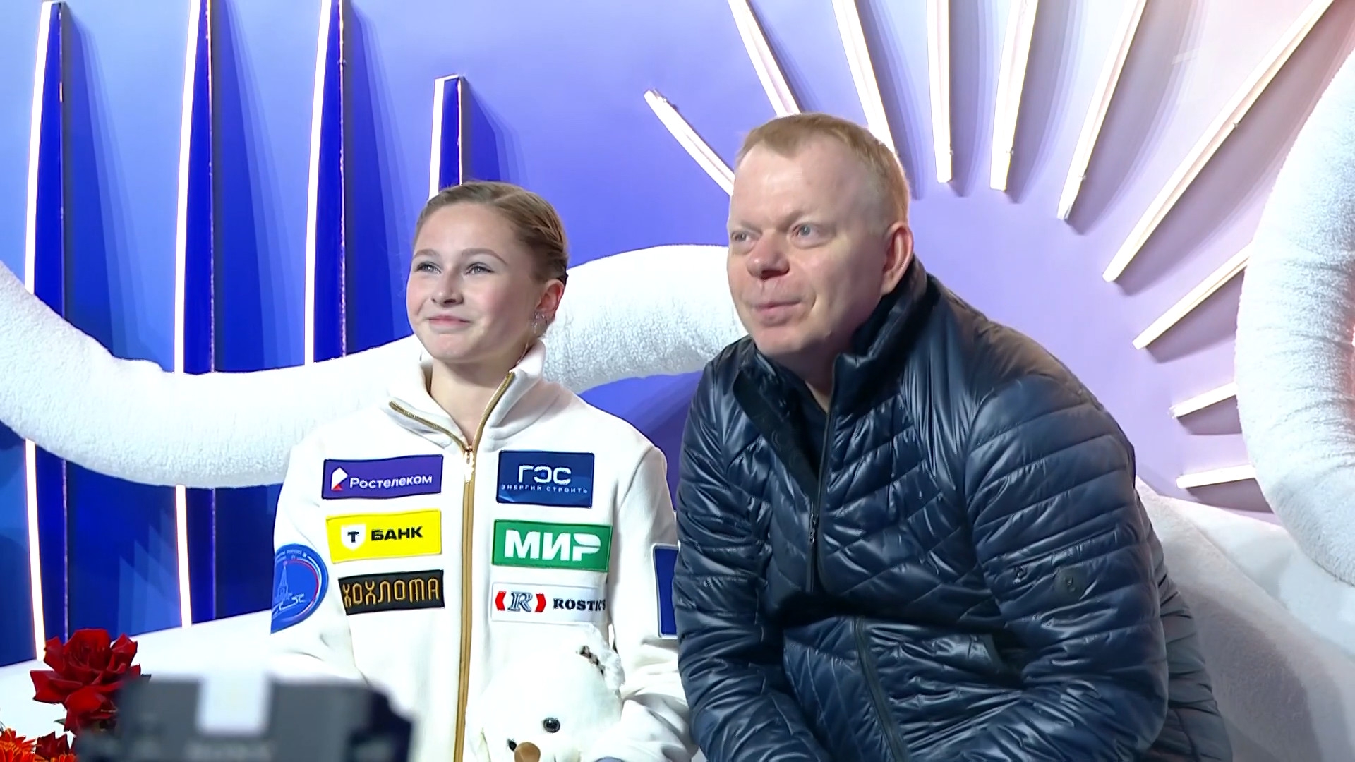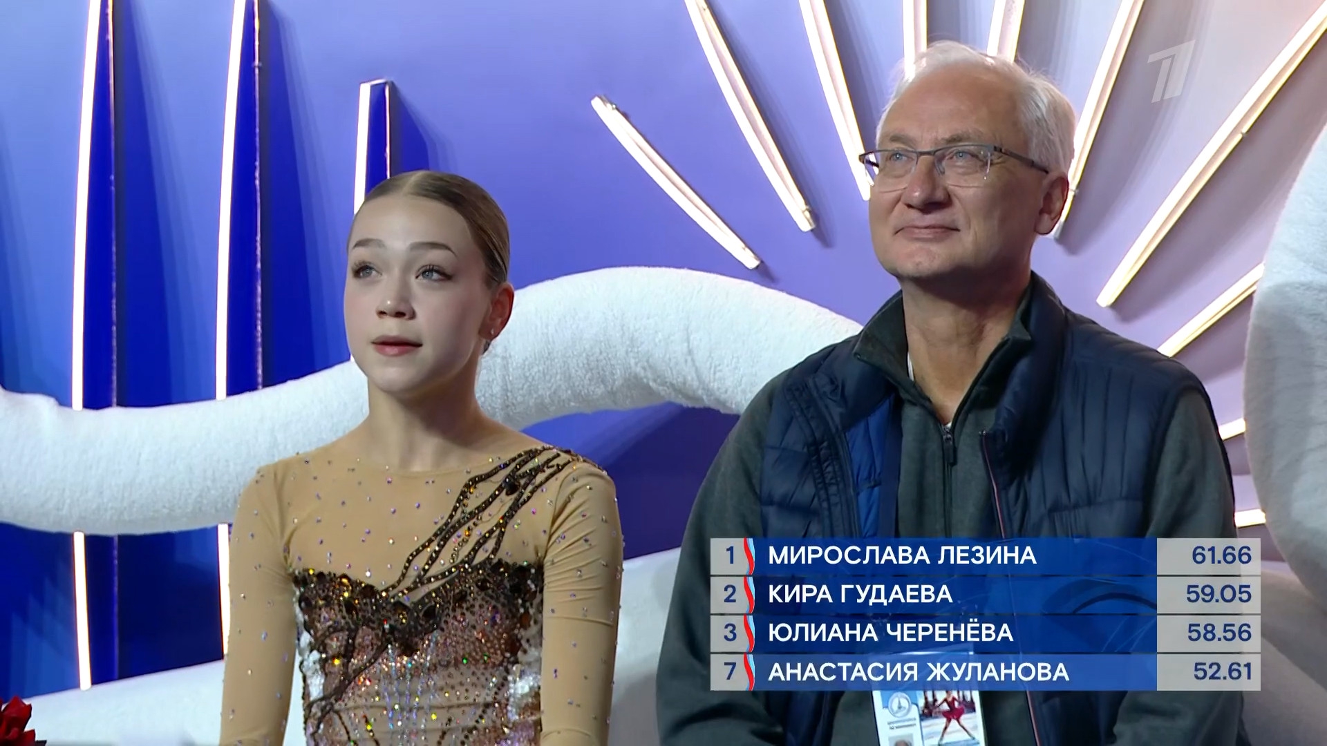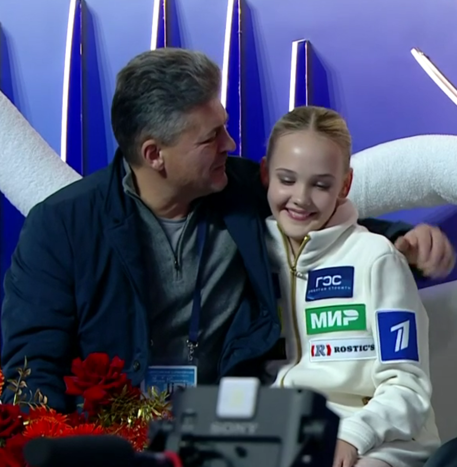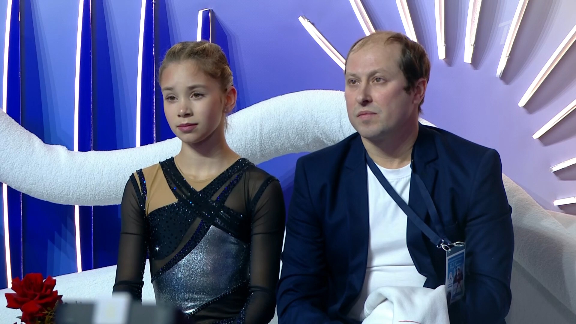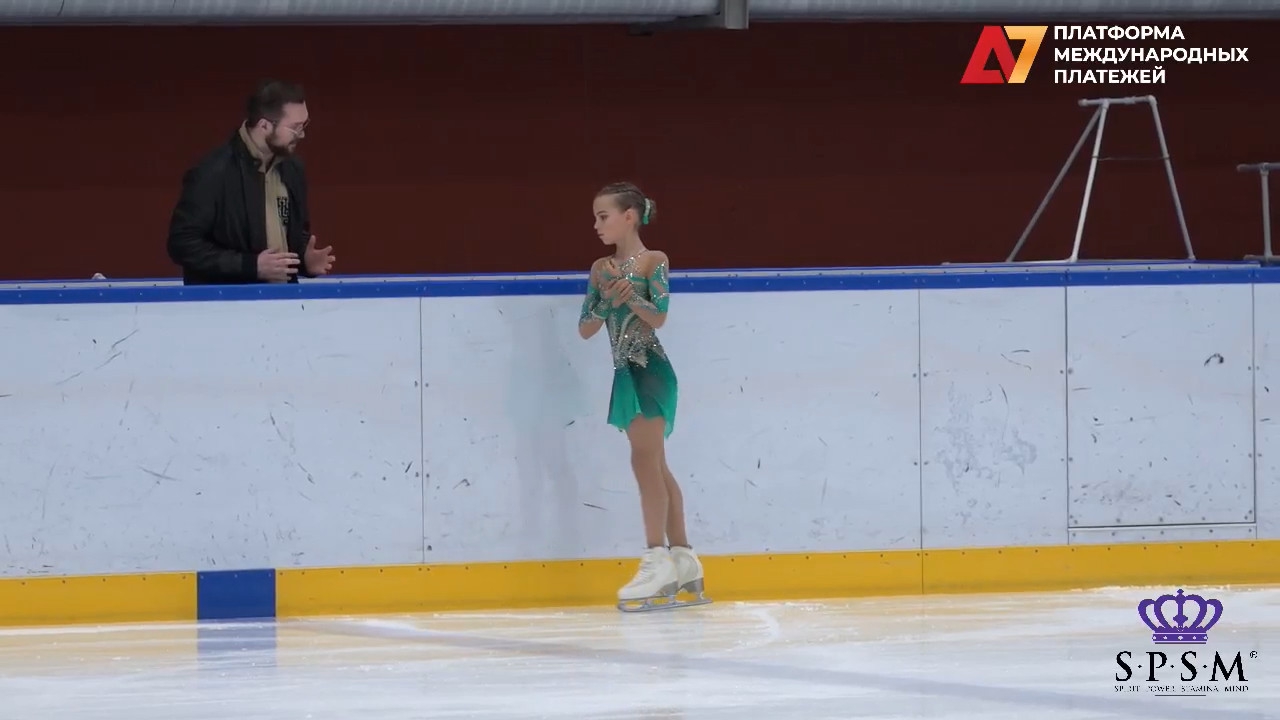 Василиса Николаевна ЖДАНОВА с известным тренером Легенда, Москвич колготки с блёстками 3r с подпрыжки 2a со спирали в сложный заход твизлами с руками наверх в ccosp 3z2t stsq2 my eternal tshukurshuka