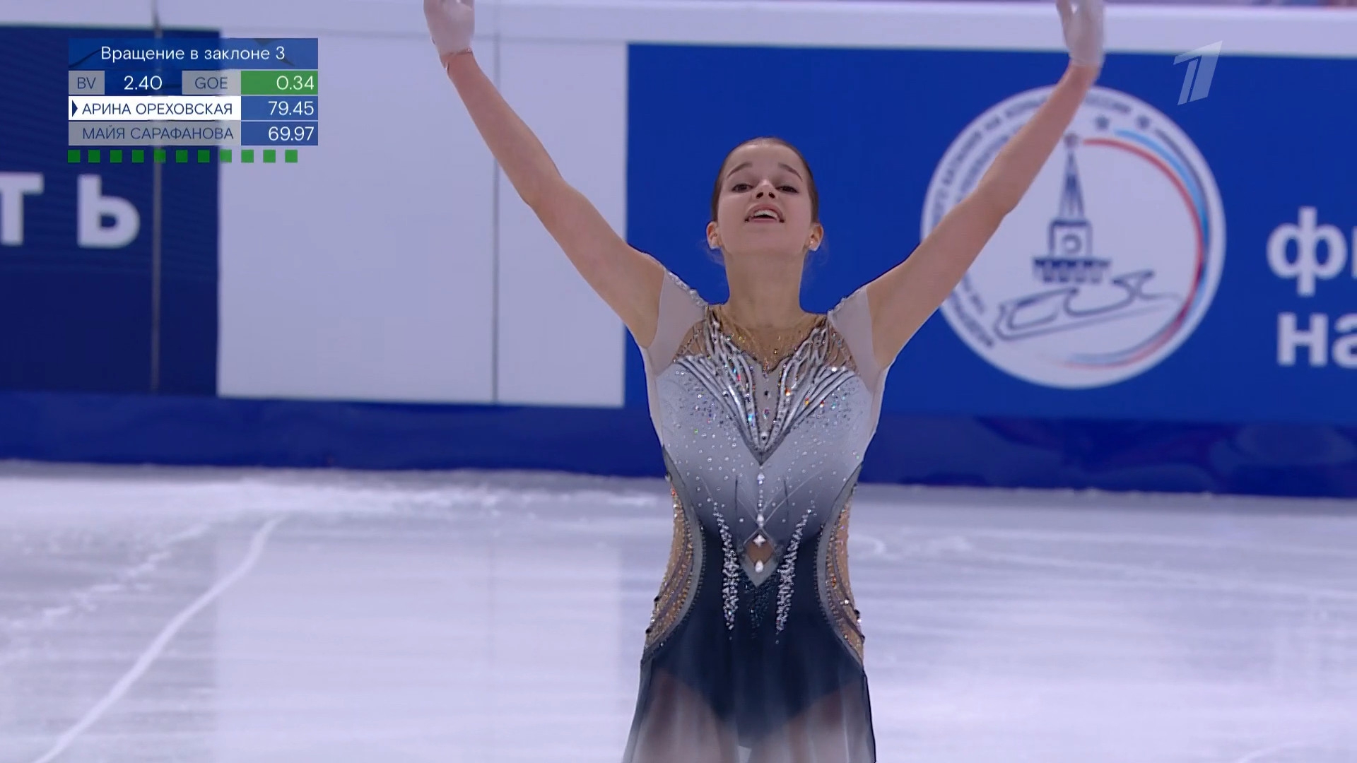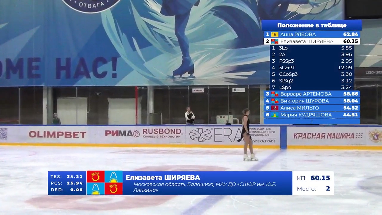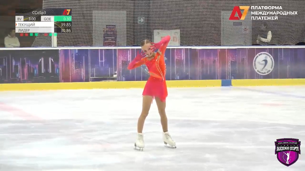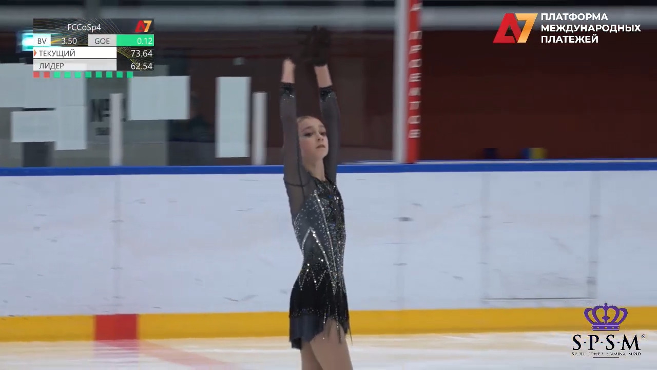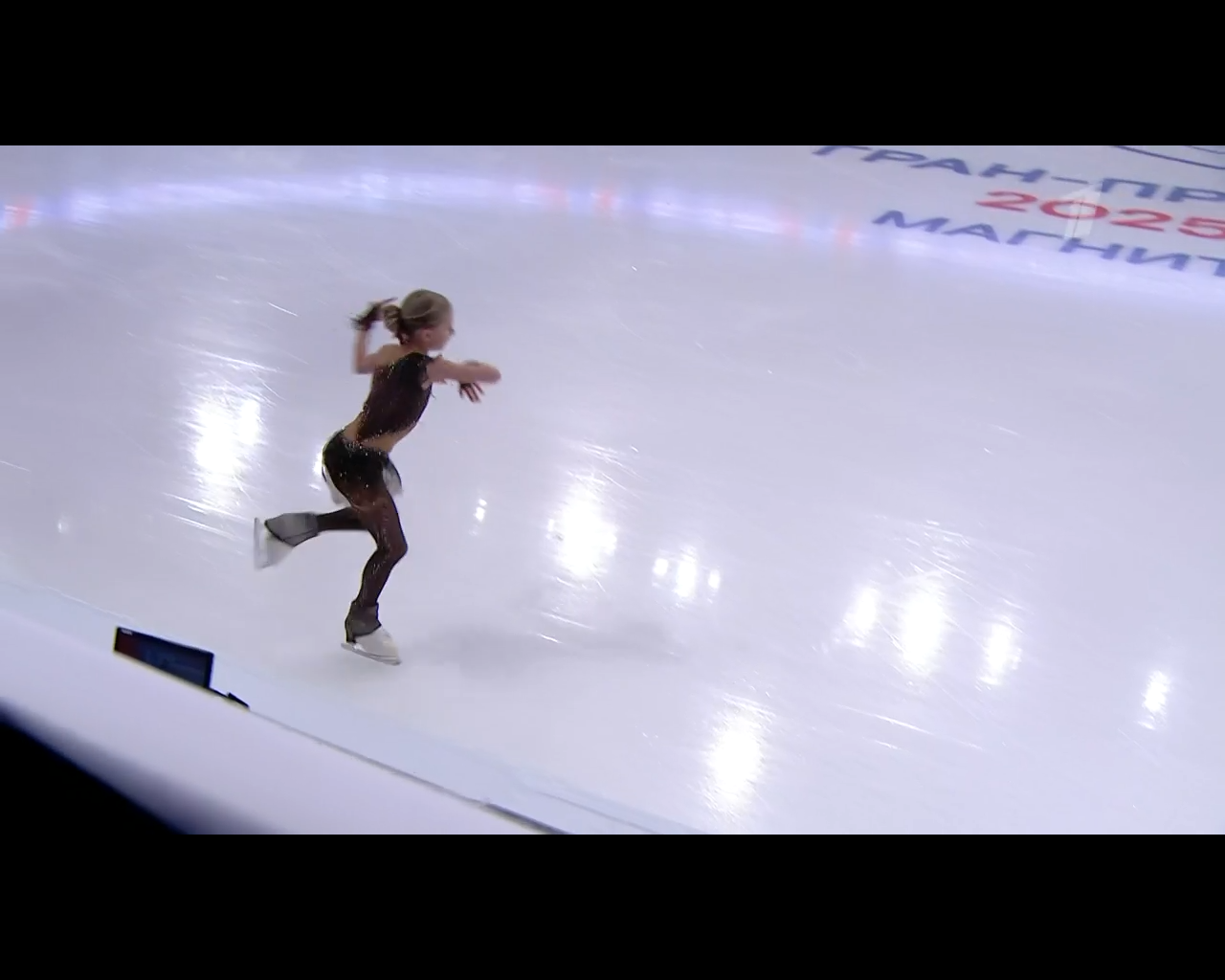 Мария Артёмовна АРТЁМОВА, 17 лет (2008-10-13), Елена Меликова МАУ ДО СШОР имени Ю. Е. Ляпкина 3z высокий пролетный fall кубарем тоже пролётно 2a 3f ? so (ноги не показали из-за борта) +combo (3f!) stsq2 ccosp в обе стороны strong!