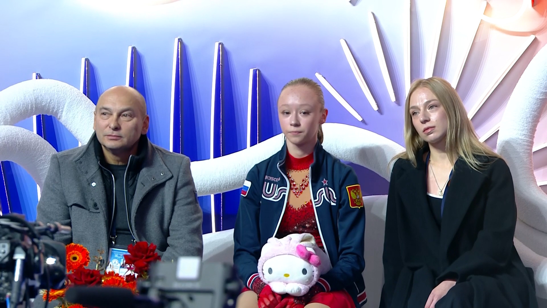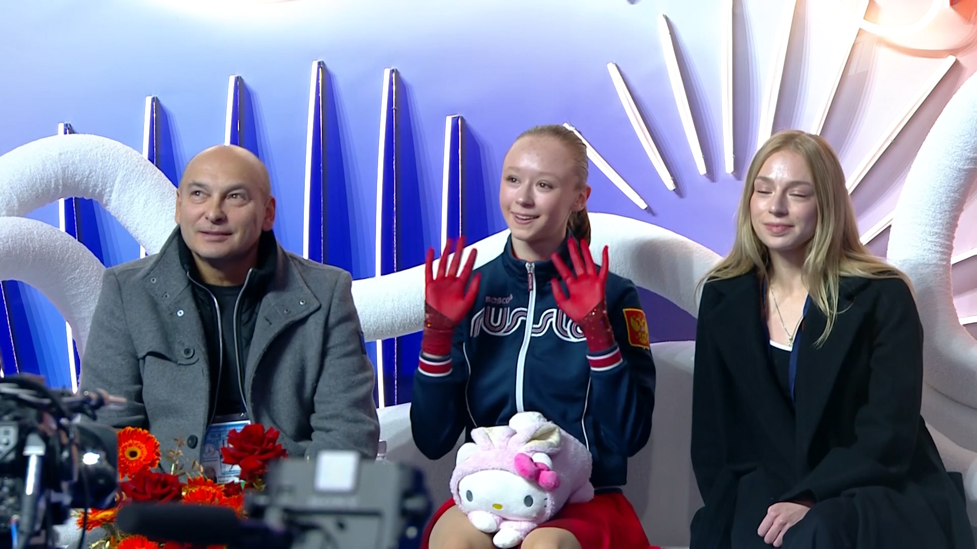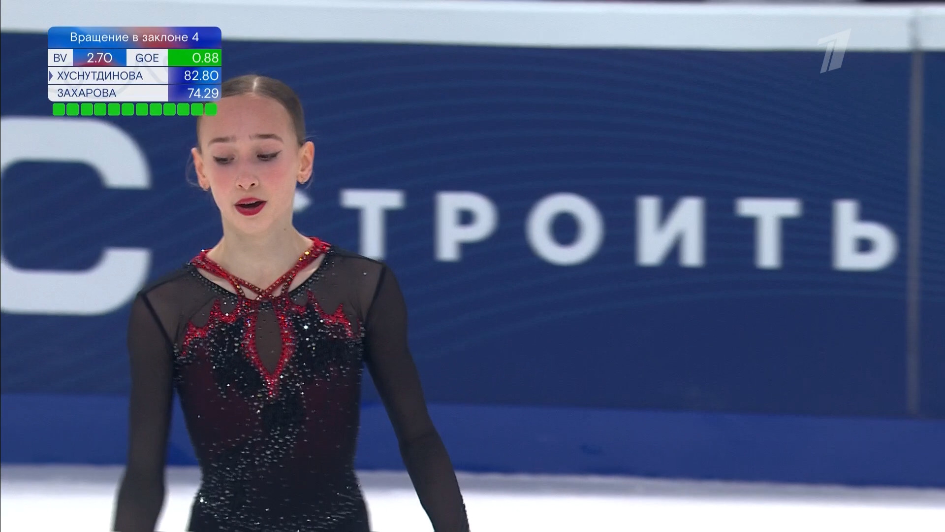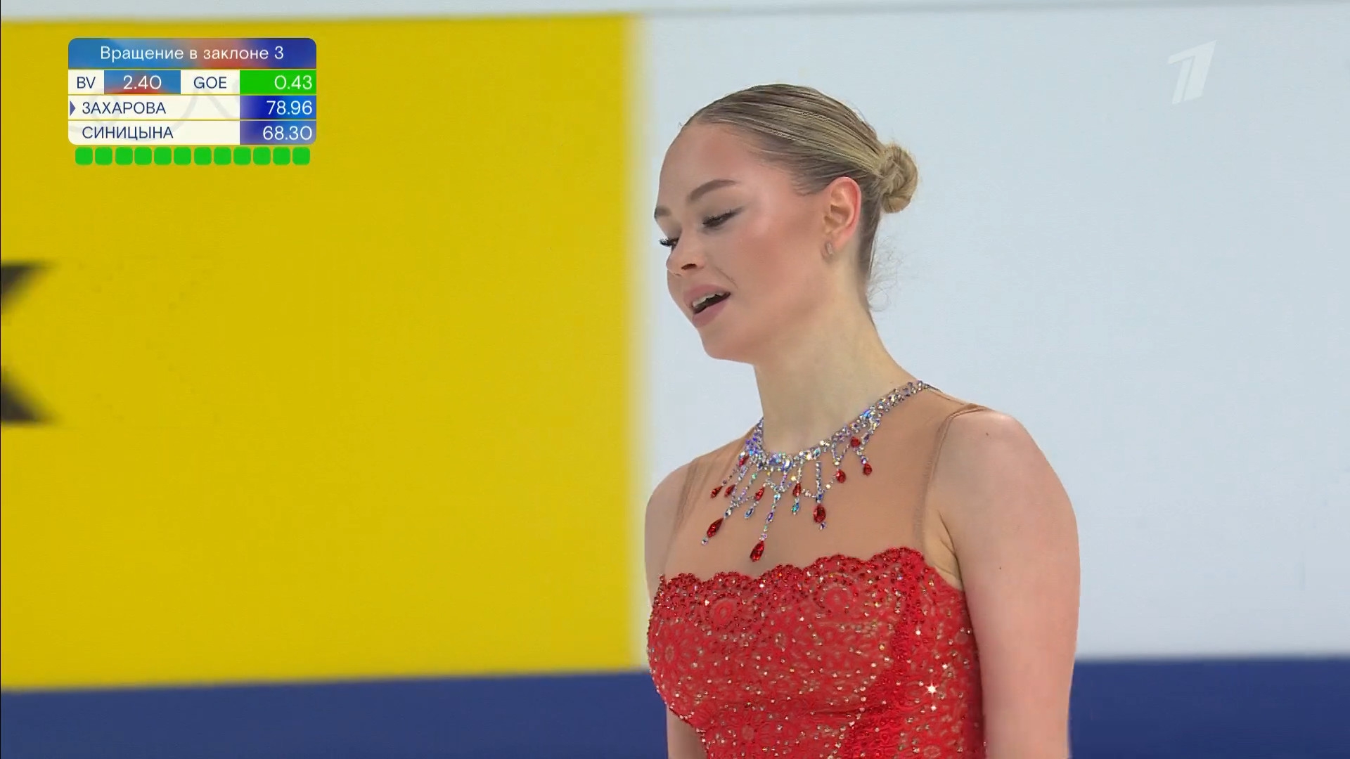 Мария Станиславовна ЗАХАРОВА Москва, СШОР им. С.А. Жука 4t - Захарова прыгает 4t и не плачет 2a3t 3s 3r chsq1 показывает пальцем в потолок в бести 3z<?3t 3f!?2a wobble 2t 3z stsq1 портит стуча зубчиком соперницам лёд