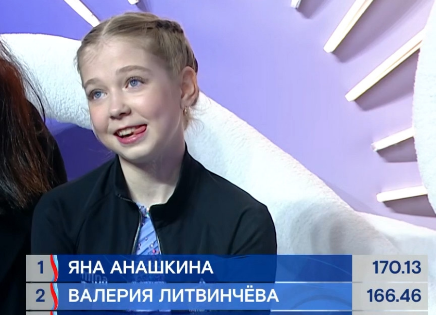 Арина Александровна МАРИНИЧЕВА Республика Карелия, СШ № 6 Holly sheit! Panova seems absolutely NOT amused! >за ворота башмачок сняв с ноги бросали 2a3t 2a 3ze ho 1e3s micro wobble 3f chsq1 3f fall +rep 3z!q2t 3r< в твизл ccosp4 в обе стороны stsq2 гнётся корпусом