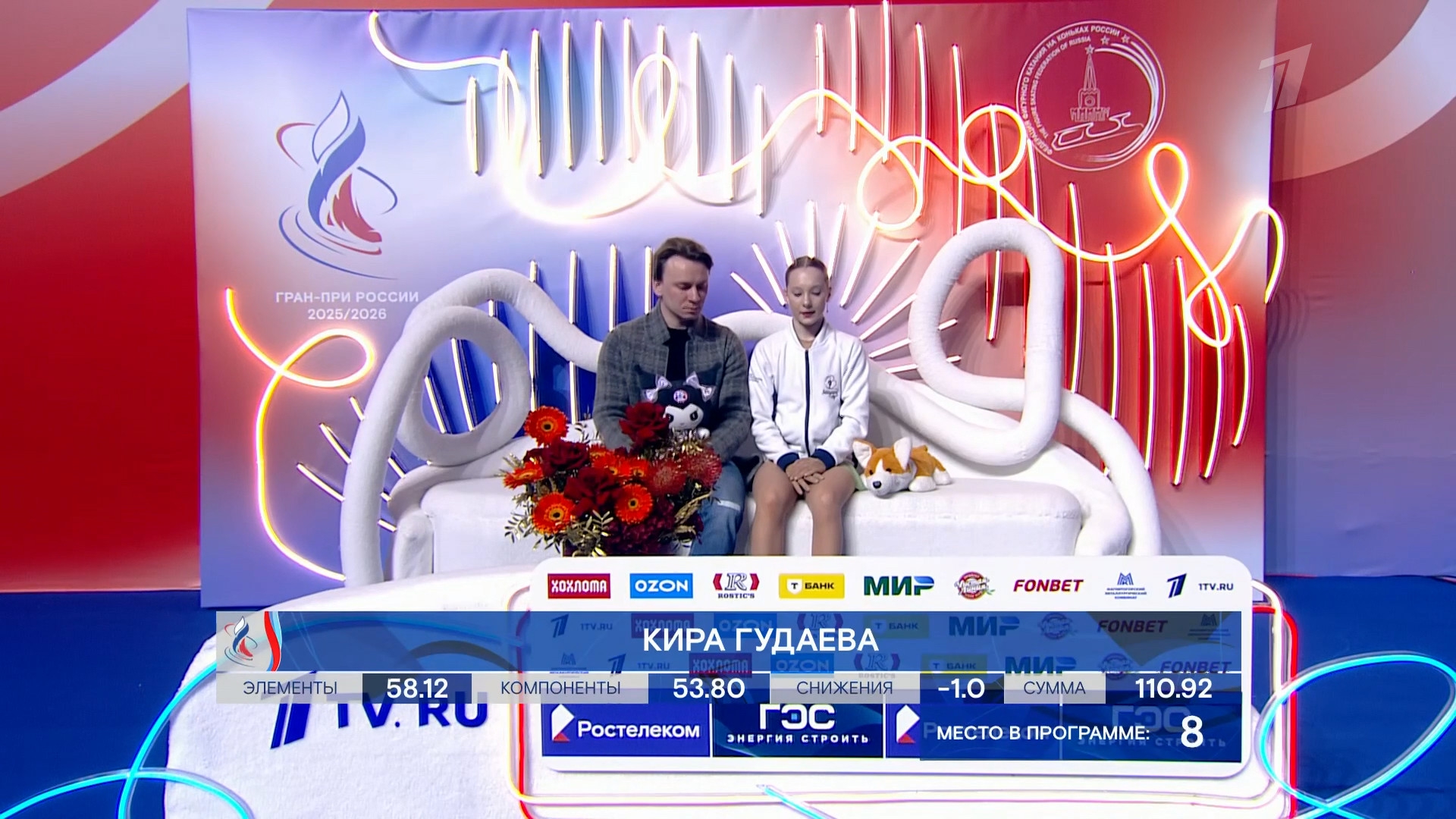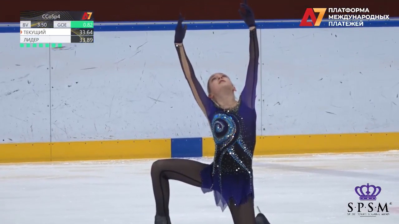Кира Викторовна ГУДАЕВА, Гачинский Санкт-Петербург, СШОР "Звездный лед" 3r 2a 3z!?3t немного ho "вытащила, молодец. поборолась" stsq2 бьёт локтем об колено + колесо сложный заход твизлами в ccops без базовой позиции