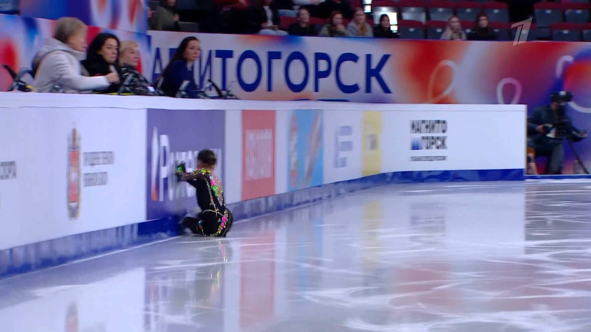 Анна Антоновна МЕЛЬНИК вроде без Царевой 3z< fall на живот, хватается за подбородок 3f симавыезд, закрутило, подталкивание +2t программу остановили. Рассечение?