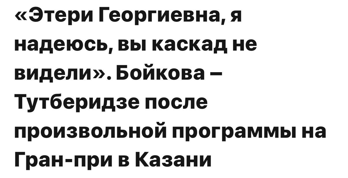 >«Ребята, Таисия и Даниил, которые сегодня заняли лишь второе место на этапе Гран-при в Казани. Я от себя хочу вас публично поздравить, вы огромные молодцы, двигаете фигурное катание вперед.