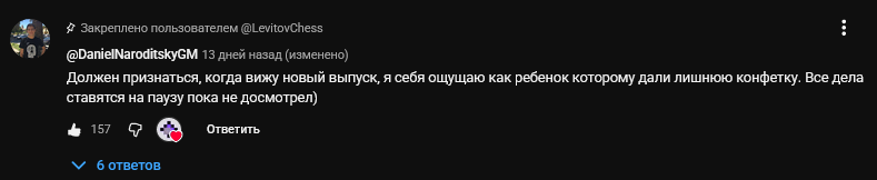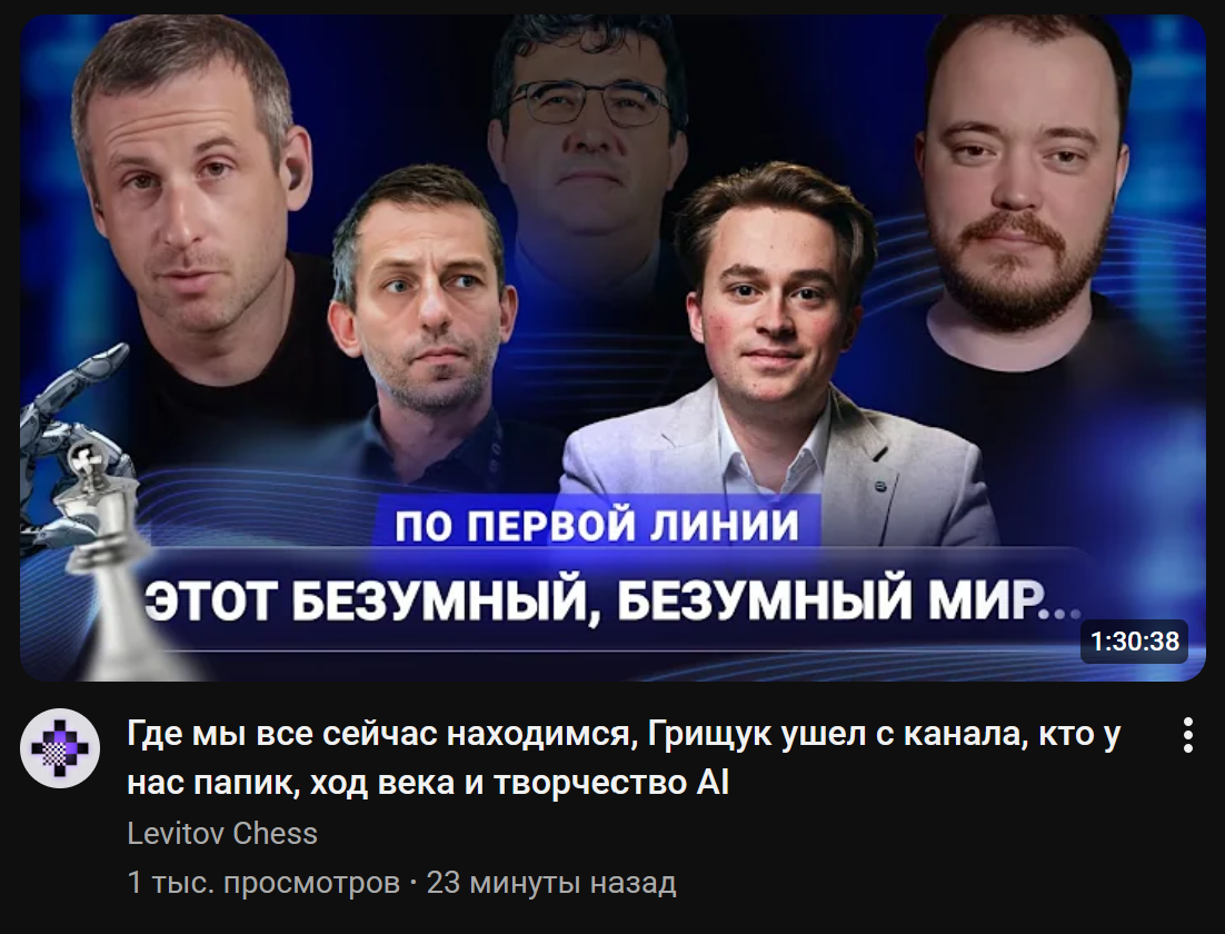 >>3257333 Как же хорошо, что вся российская (и мировая) шахматная жизнь кипит вокруг канала Ильи Левитова, каждую пятницу с нетерпением жду входа нового видео на его канале. Есть Левитов — есть в России шахматы, нет Левитова — нет в России шахмат. Кто, если не Левитов?