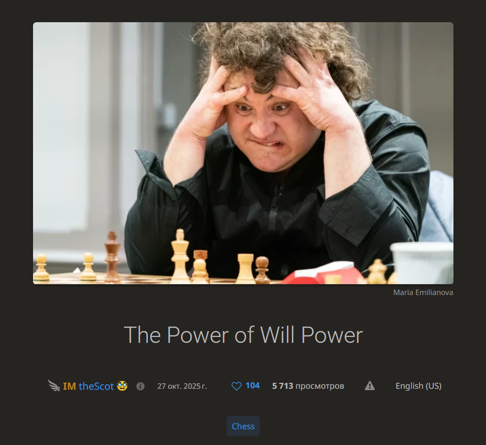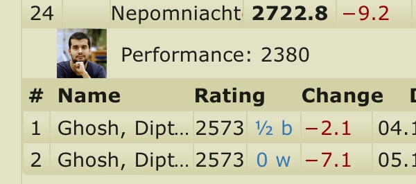 Вообще индийские нонеймы тут пока дают жизни, запах ссанины и высокая влажность помогают дрючить сахибов. Харирама (тренер Гукеша) позавчера выдал партию в а-ля Нежметдинов-Черников из книжки детства "Отдать, чтобы найти" в русской с жертвой ферзя за 2 фигуры на 8м ходу, сегодня разъебал Дарду за 25 ходов.